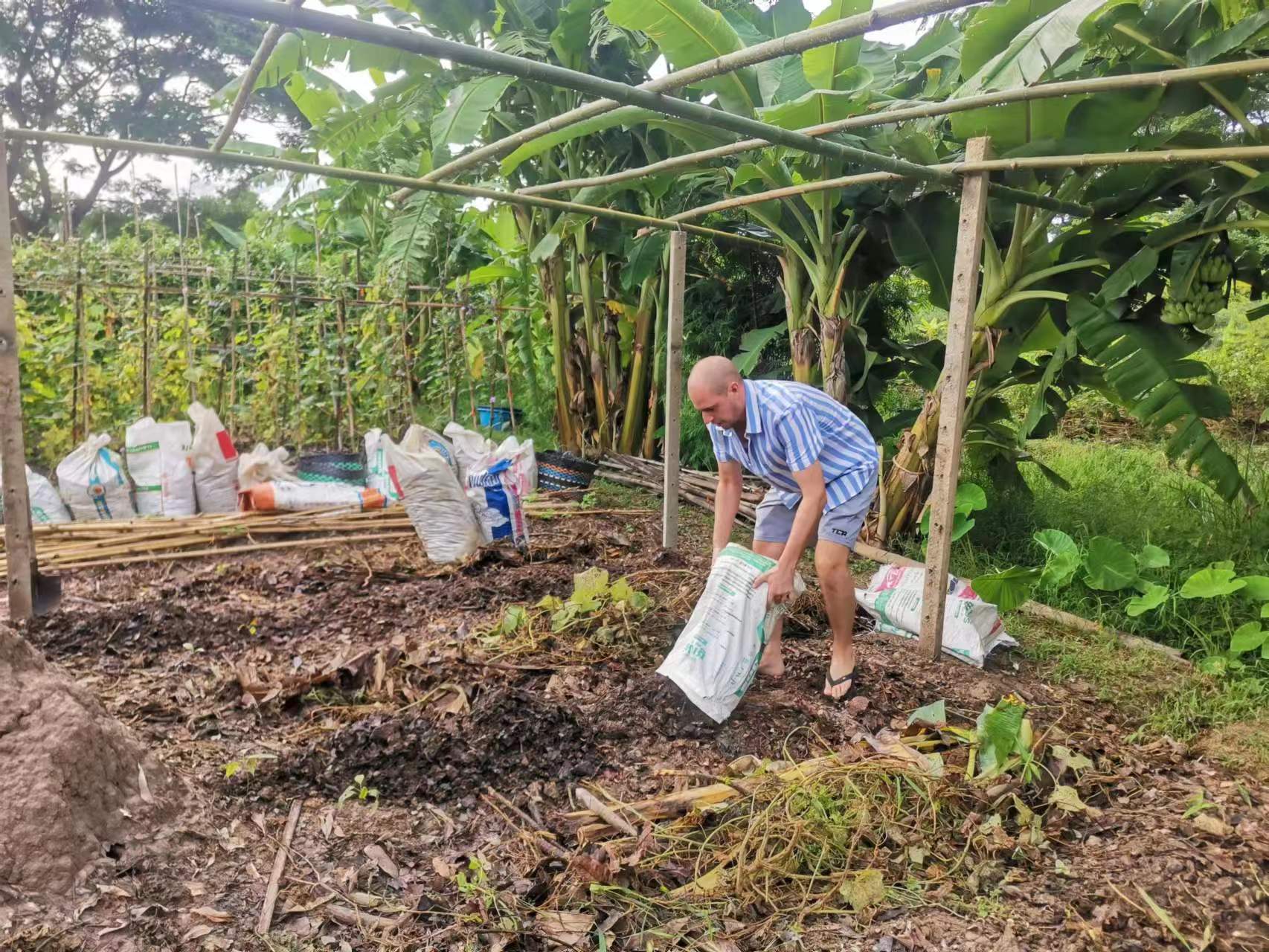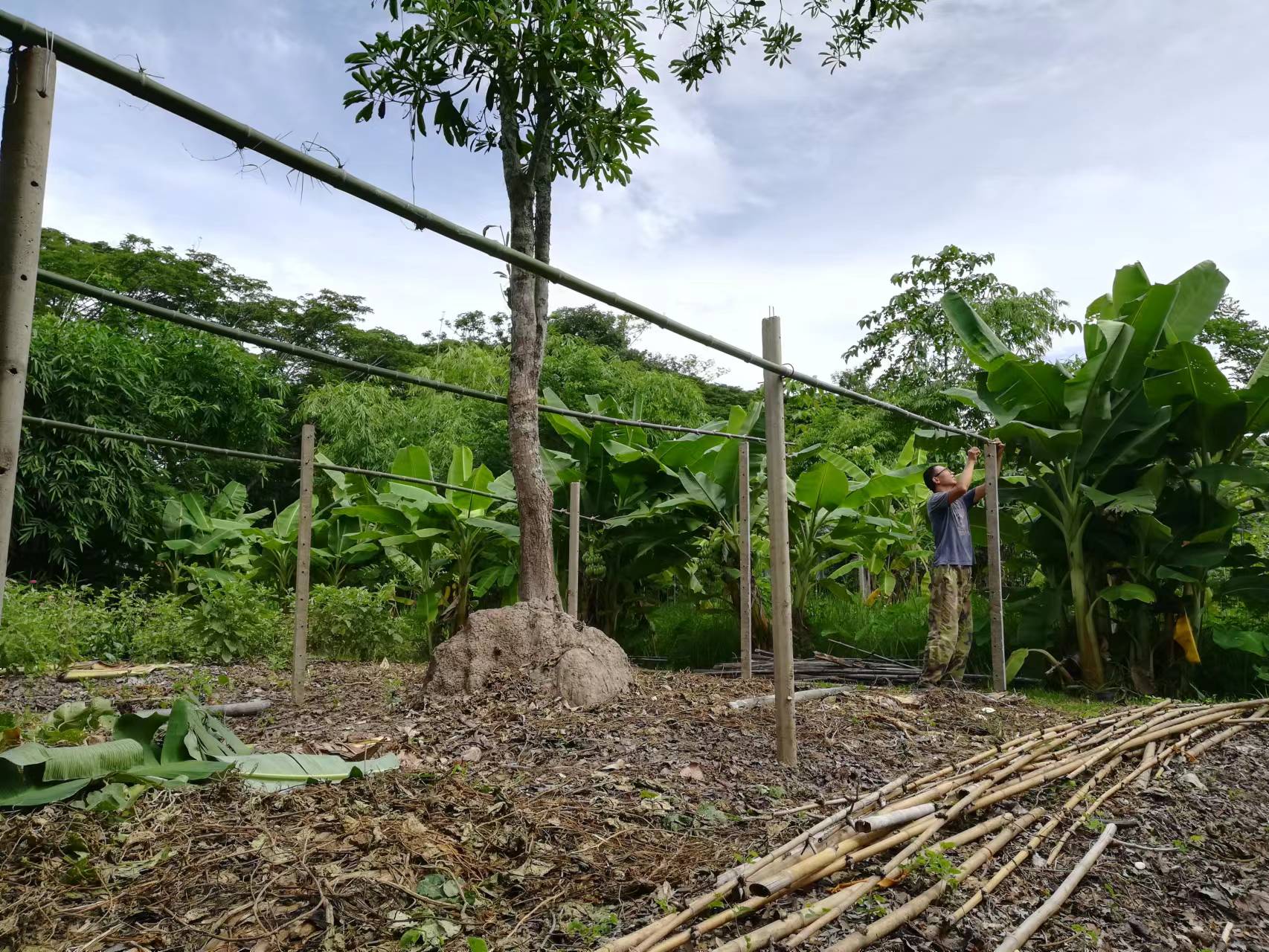 這些天仰樂戒鏡她們繼續收集滿院子割倒的草,滿滿的裝了一車又一車,一些拉到芒果園給大氣用,一些給大面積菜地以及花園都做了覆蓋。 仰樂嬌娥拆掉了原來的絲瓜架,現在每天都能採收足量的蔬菜,仰樂準備以後多種一些百香果西瓜等水果。 光哥收集水泥柱和竹子為即將種植的百香果苗做了堅固又美觀的架子。