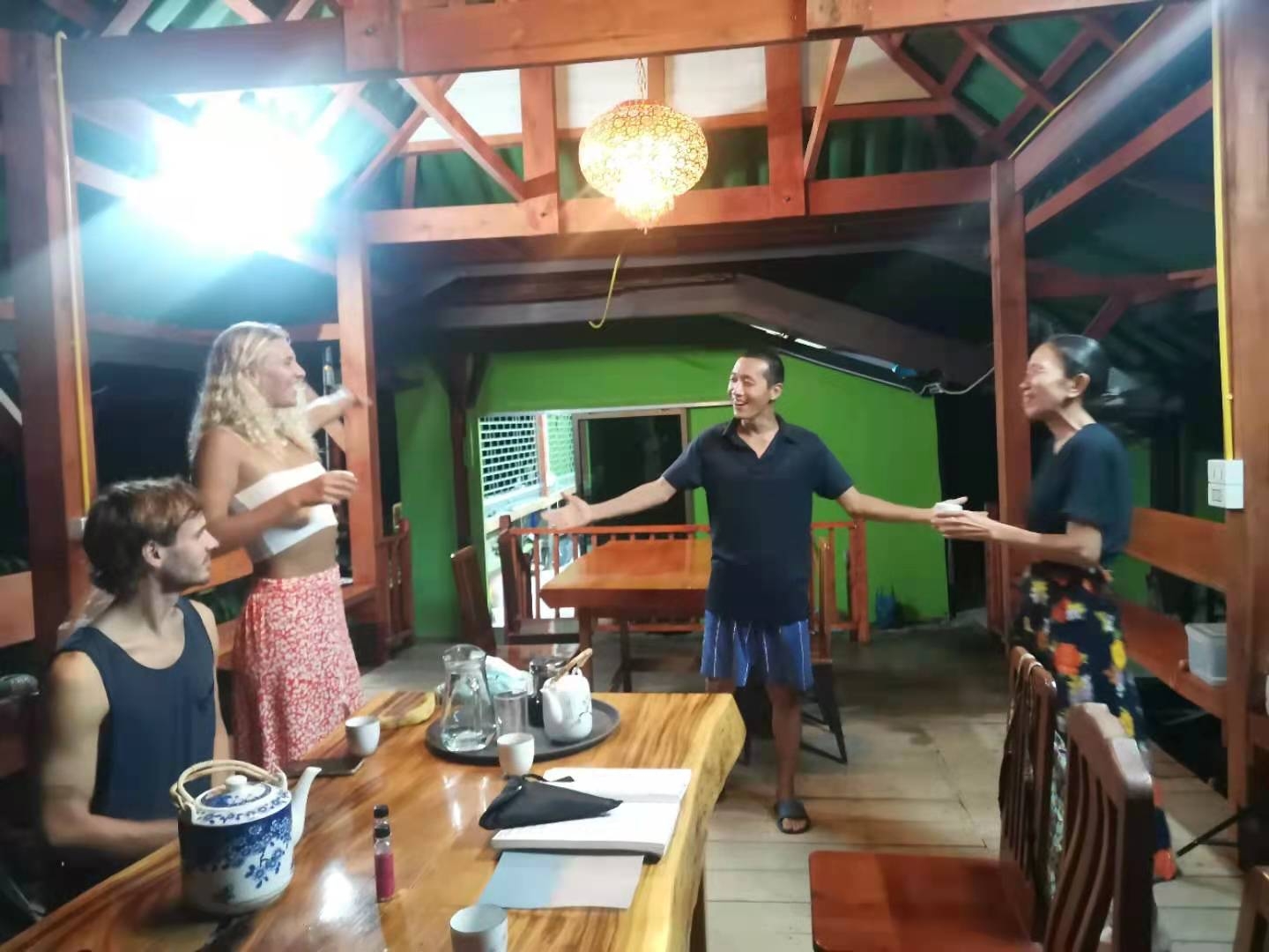 為了讓他們更多的了解我們家園模式,晚上給他們看了同心製作的介紹家園的視頻,當導遊講到他的目標是建立一個人與人,人與社會,人與大自然和諧相處的社區,看著可愛可親的成員們快樂幸福地生活在美麗的人間樂園,他們被深深觸動,說我們社區是最美的社區,我們是他們見過的最純善的人們。