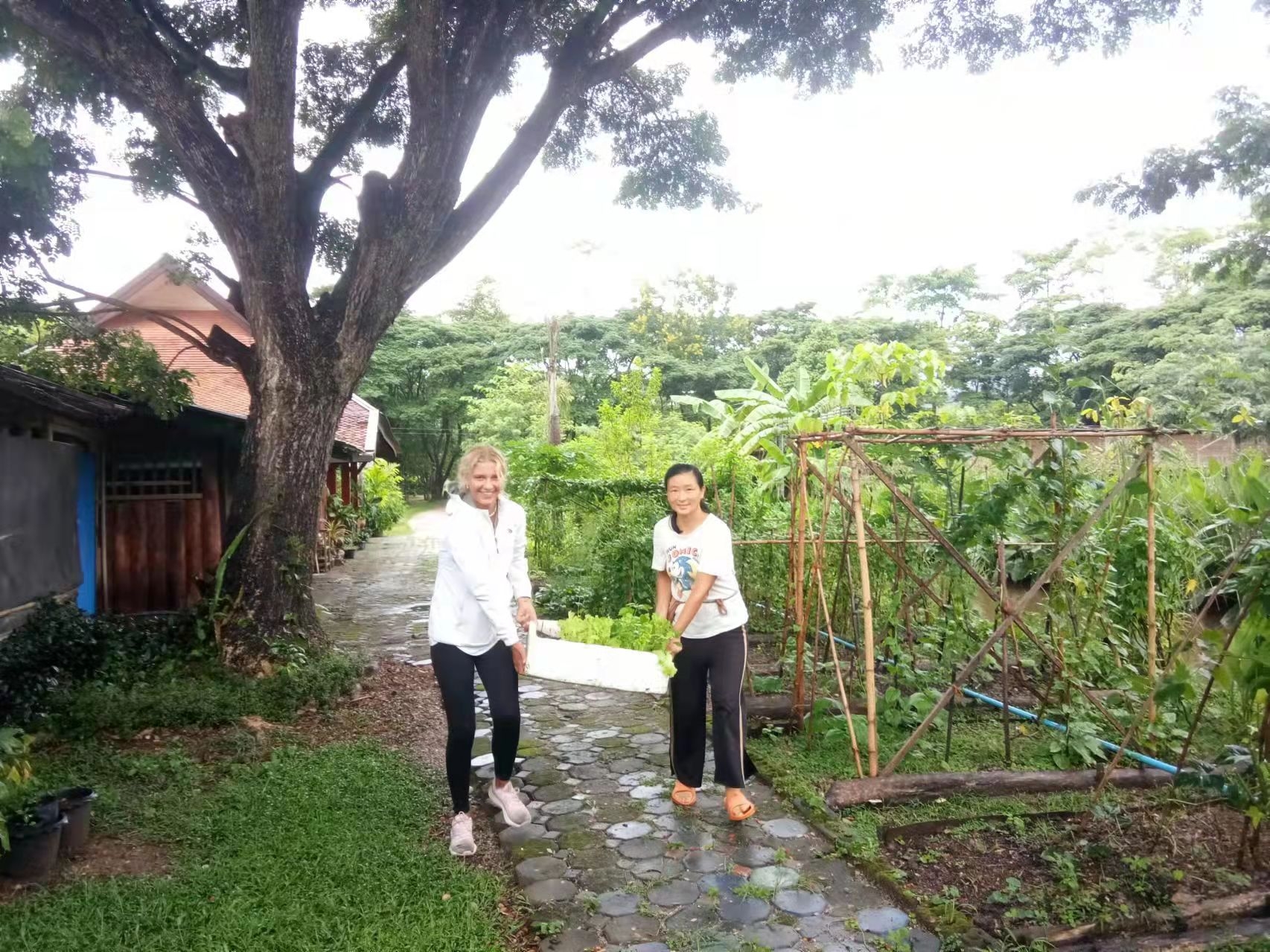志願者到的第二天Pinong剛好也從清邁趕來,幫著打掃房間,洗衣,除草,還帶仰樂去縣城配眼鏡框,配鑰匙,有了她,不僅幫我們分擔了不少家務活,外出辦事也變得省時容易,非常感謝。