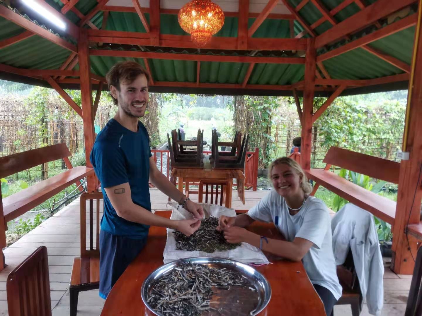 經過輝一聯繫引薦,英國女孩Sophie和她在旅途中相遇的朋友阿根廷男孩Mati於6月29號來泰國二分院拜訪,Sophie說自己在旅行中從這些國家享受了太多,卻沒有付出什麼,所以來這裡幫我們做一做農場的工作,力所能及的回饋報答。