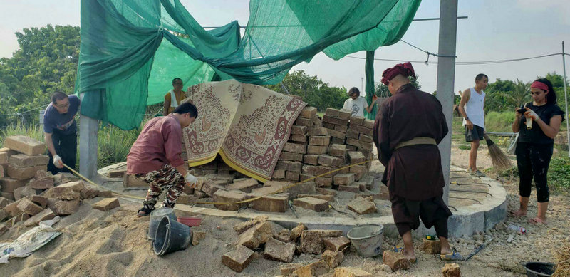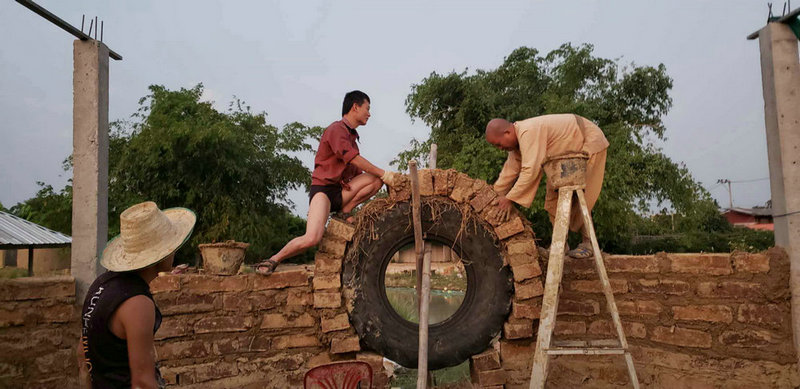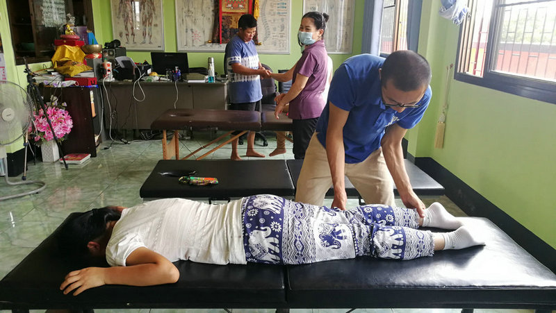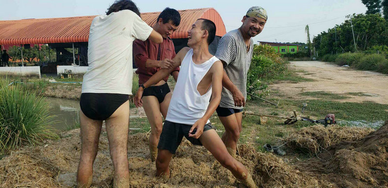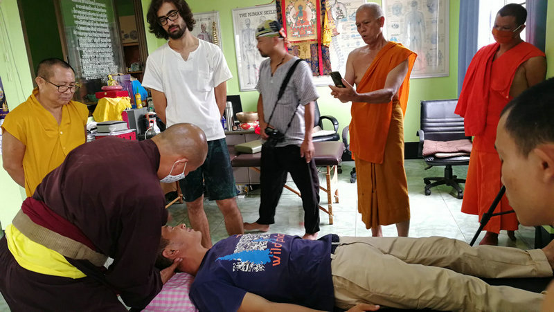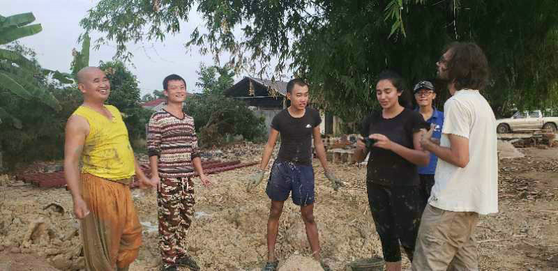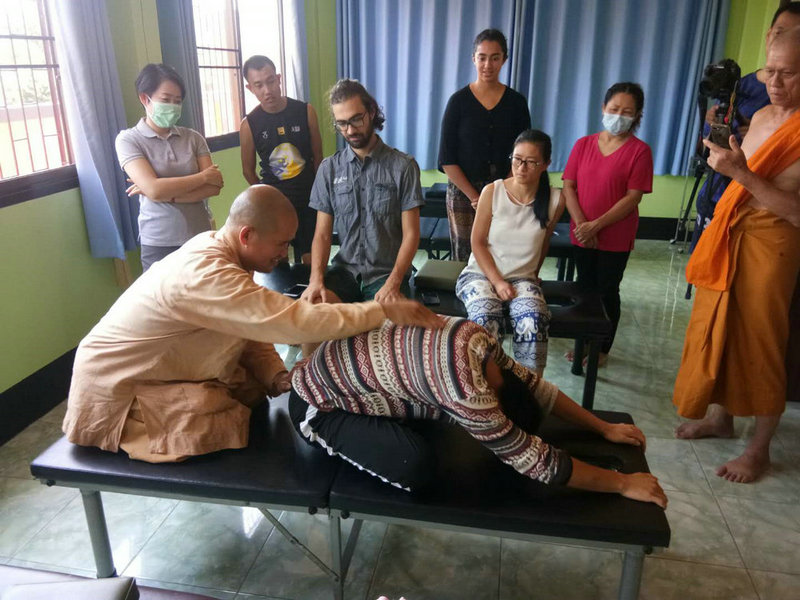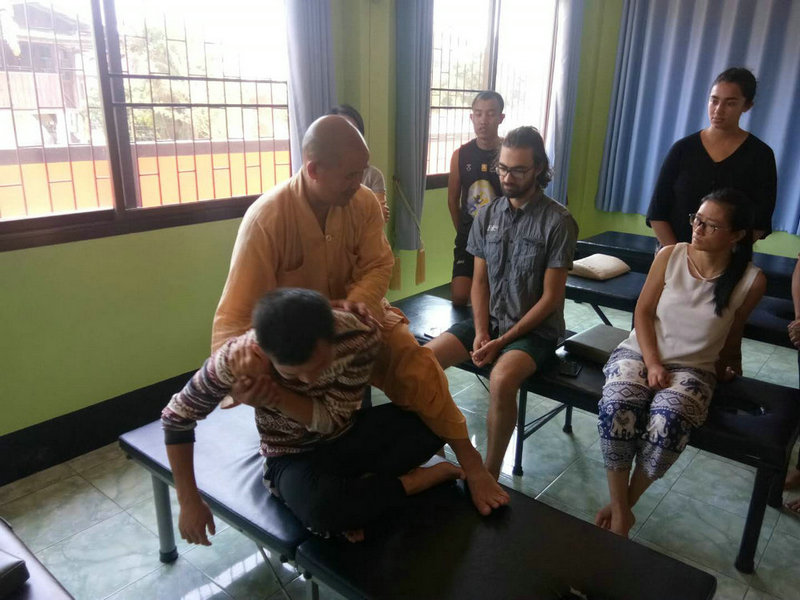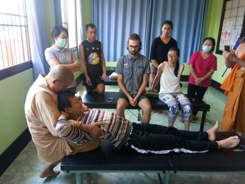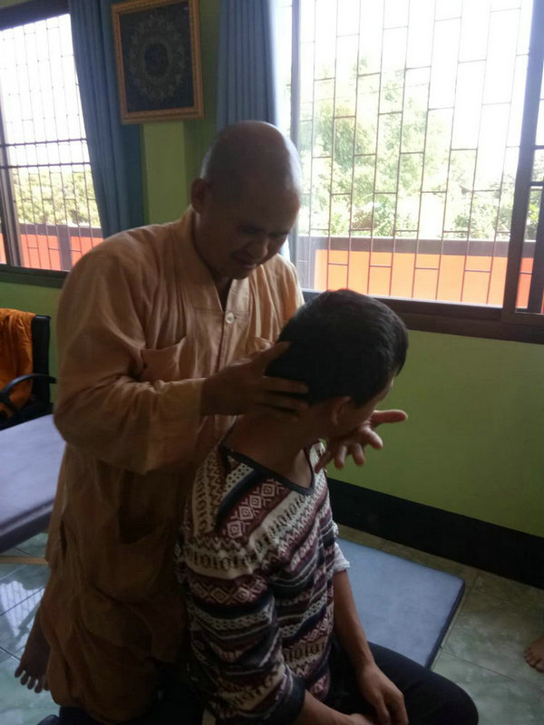 前段時間,輝一受隔壁寺院主持的邀請,特約去拜訪了達隆師傅,他是正宗的泰國人,但在台灣當大和尚生活修行了二十幾年,最近返回家鄉處理事情,專業是搞正骨按摩,業餘時間還會幫別人測生命密碼,會說一口流利的中文,輝一、仰樂、千姿三人小組一起去體驗了他家裡的類似農場,利用三天的時間學習了一套正骨按摩手法,據說有幾十個動作,每天要反覆練習多次, 順便還參與體驗了蓋土房子的建築工作。