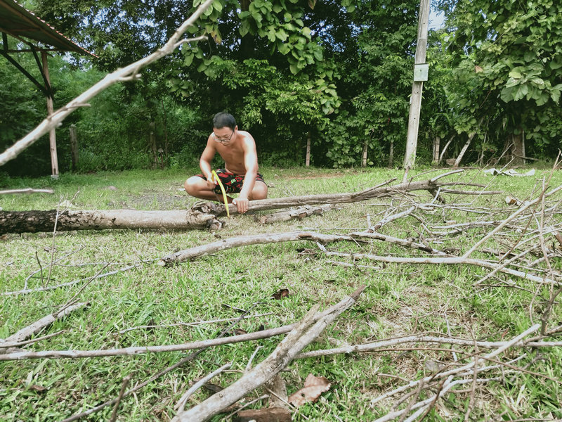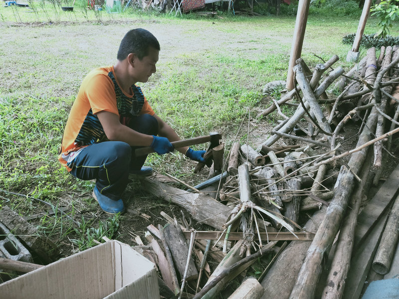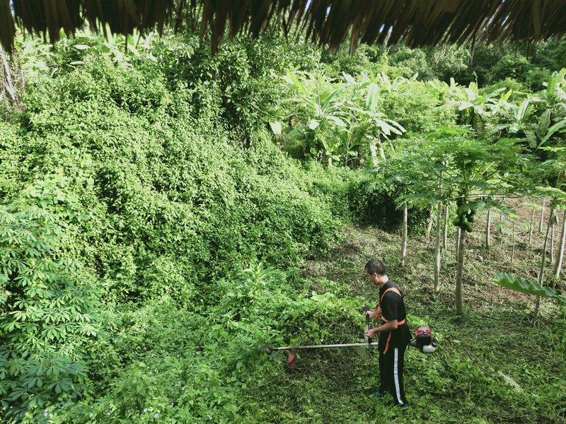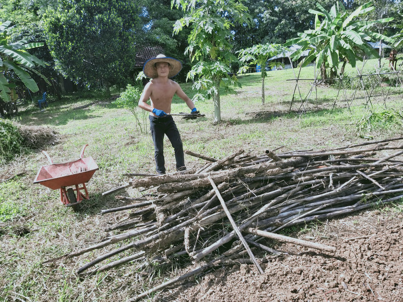 不知不覺中時光飛逝,這次回來又有一個月了。 我們來看看輝一同學在做什麼呢? 他經常扛著割草機遊走在山上山下家園的里裡外外,如同衝鋒陷陣打前線的戰士一般,看起來特別英姿瀟灑,每天汗流浹背,清理各處灌木雜草和整理一些細節,因為幾個月沒割草,現在要重新把整個山收拾一遍,我真佩服他持續割草的毅力。 小哥哥可是位大忙人,隨時得不定時處理一些外務關係和辦理簽證或採購等,有時候會説明光哥搞建設或説明我翻地種菜,還貼心的把柴火準備的多多送到廚房,這讓我感到很溫馨。