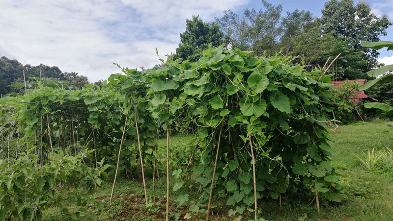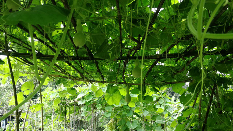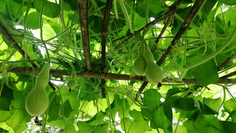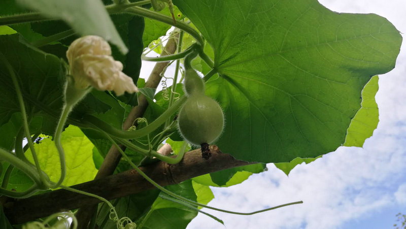 本場明星是葫蘆瓜。 在仰樂和光哥共同努力的辛勤澆灌中結出的寶葫蘆,此時的它們正在展現著其蓬勃旺盛的活力,眼看著馬上就有數不勝數的“葫蘆娃”降生了,哎喲喂,心裡別提有多喜悅了。 望著它的美味垂涎欲滴,忍不住口水吞了又吞,形狀那麼好看,相信口感一定不錯,我們會爭取替兄弟姐妹們多品嘗一些噠。