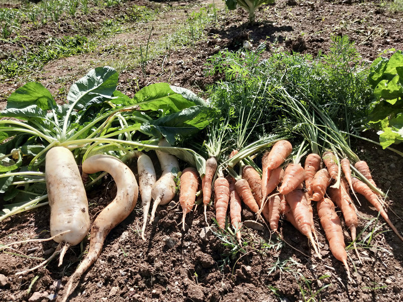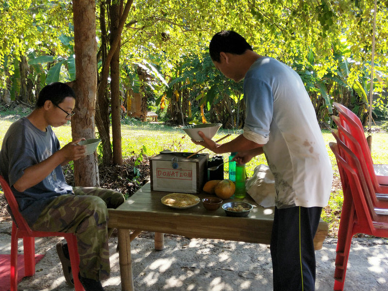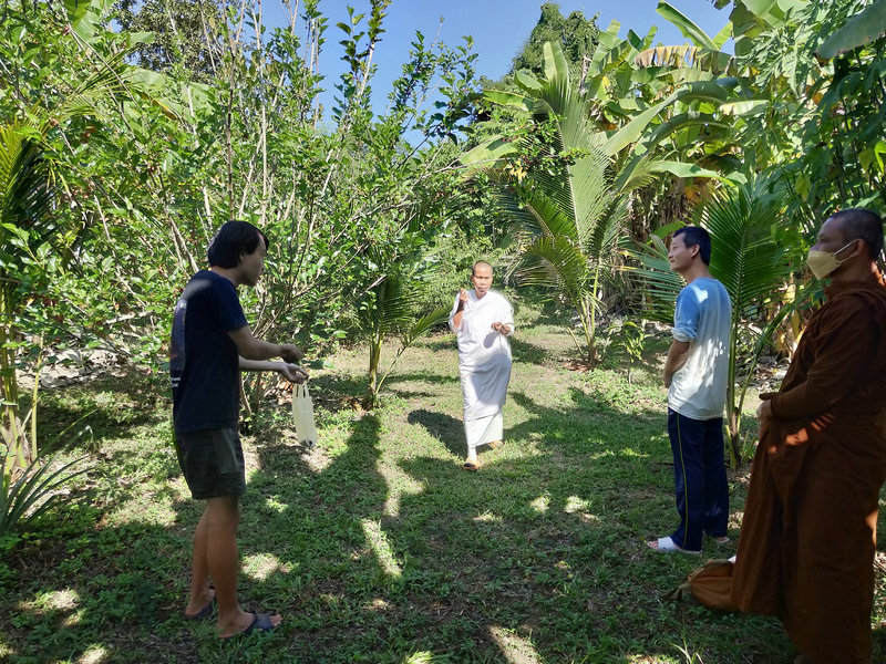 近來在隔壁寺廟短住的尼姑看上了我們園子裡的桑葚樹,她特別喜歡吃桑葚,隔三差五就想來摘一波桑葚,我們當然也不能吝嗇,好東西大家一起分享嘛。 發現人家寺廟修行的和尚尼姑從不白白占別人便宜,總是會以更多的物品來換取,享用了一些我們的桑葚後,又回送了一些百香果、牛油果、咖啡、生薑、芋頭、洛神花茶,他們非常懂得感恩回饋。 就像我們與房東之間也是如此,吃不完的蔬菜經常分享給房東,她也常常會送我們一些水果豬肉米飯等吃的東西。 當然有時候也會給寺廟和鄰居送些新鮮蔬菜,話說「遠親不如近鄰」哟。