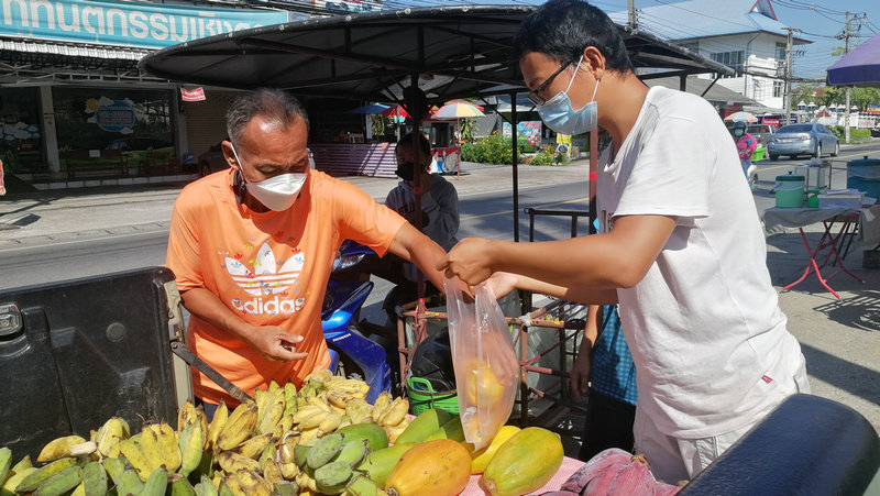 第一次,我和光哥一起去小鎮上,看看是否可以擺攤或有無商家大批量採購的可能,試探了幾個點發現還是有條件和機會營業的,由於準備不充分只賣了一個木瓜就匆匆回來了。