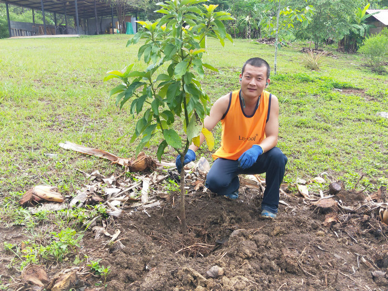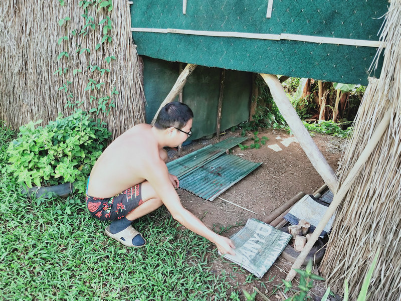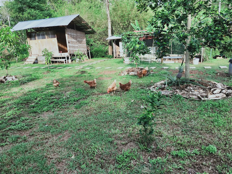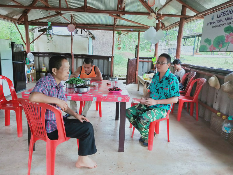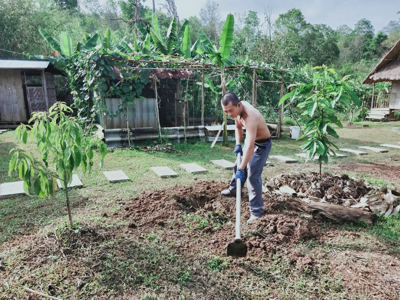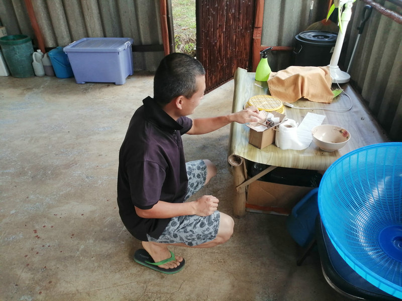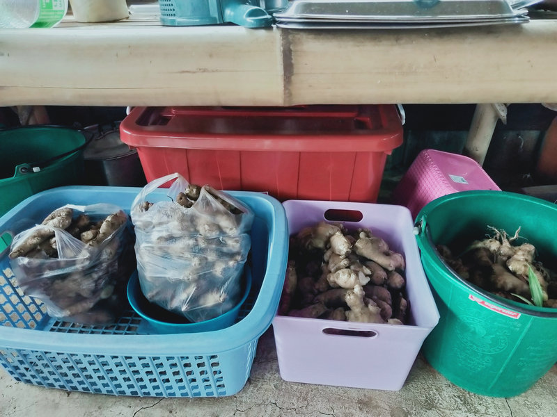 Pinan房東前兩天要在隔壁寺廟聽講經說法,順便也過來一分院看望了我們,剛來那天沒想到車軲轆掉在了半路,輝一趕緊開車去援助一番,接著在我們這裡四處轉了一轉聊了會天,第二天就匆匆離開,說是要去忙著修車。 他依然是那麼樸素和善,給我們帶來了他家的特產好多的生薑,這個品種是國內常吃的那一種,我把生薑分成了四份,一份給鄰居,一份給Pitoy房東,自家再留點,還有一些已經出芽的姜種在了地里,泰國還是很適合產薑的。 還有小半袋子的特殊木材,這種木材天然含油,極易引火,這下好了,感謝他送來了雨季的及時寶。 同時我們也將自製的洗潔精、產量較多的辣椒、小蔥摘了一些送給他。