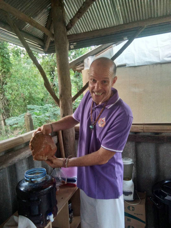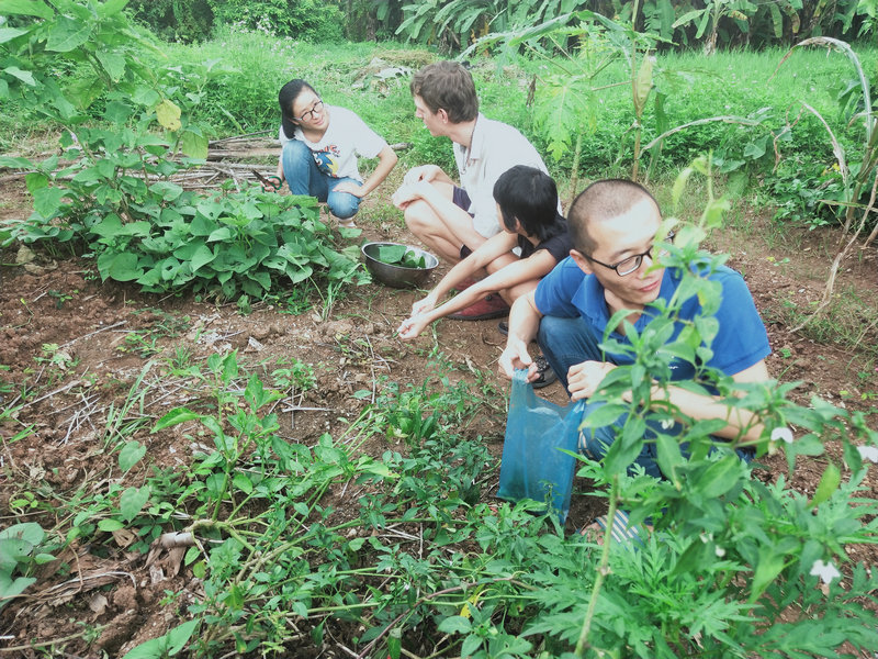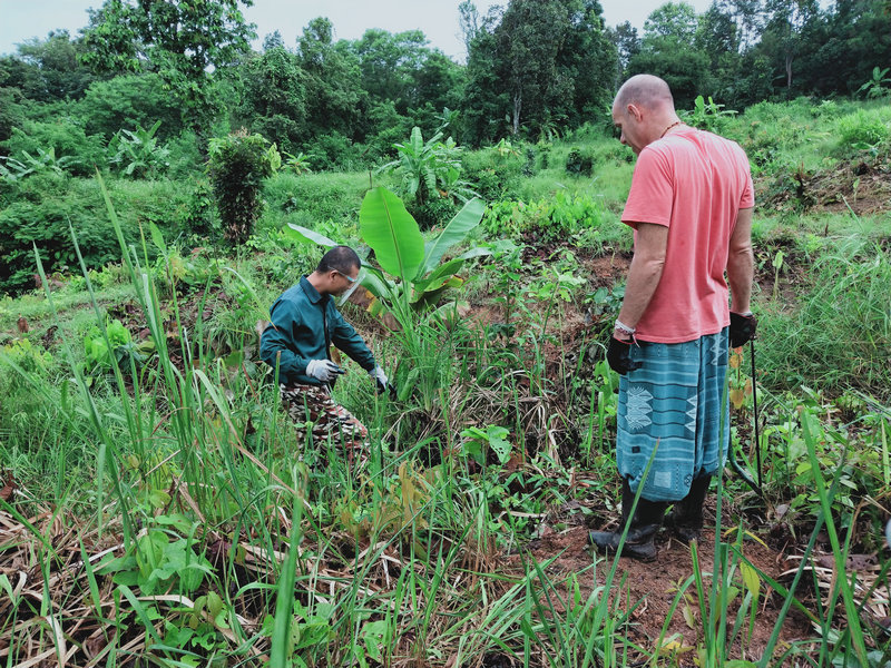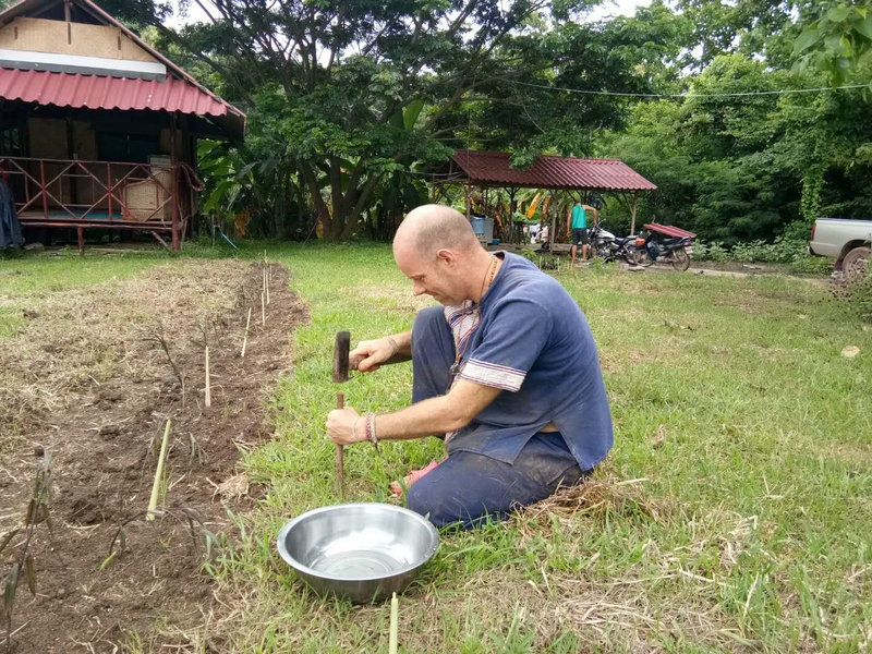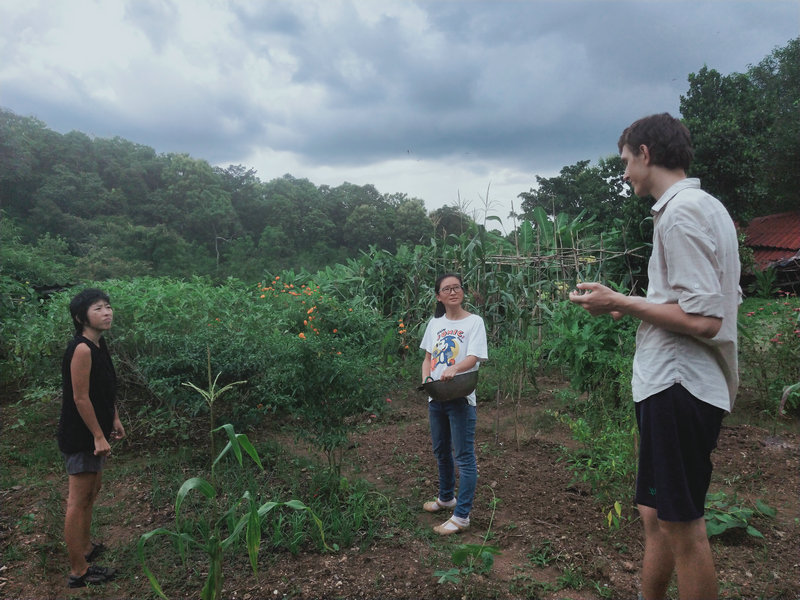 Daivd很擅長聊天交朋友,聯絡各個生態社區,心願是組建一個國際大家庭。 他懂得朴門農藝和會做很多事情,比如和光哥一起製作並更換上了一個新煙桶,幫忙維修一台舊電腦,修復一個撿樹枝的剪刀使其煥然一新,製作了酸甜可口有益身體的紅茶菌飲品,種植了一些檸檬草,到處撿拾採集各種植物種子。 noiy精通泰國的許多植物,知道它們的作用和價值,帶著去山上挖可食用的竹筍,教我們烹飪美味泰餐,聽說他還會做豆腐和自製生態環保洗滌產品,有機會需要好好跟他學習一番。 這兩位也即將啟程和仰樂一起留在生態村播撒愛,體驗創造。