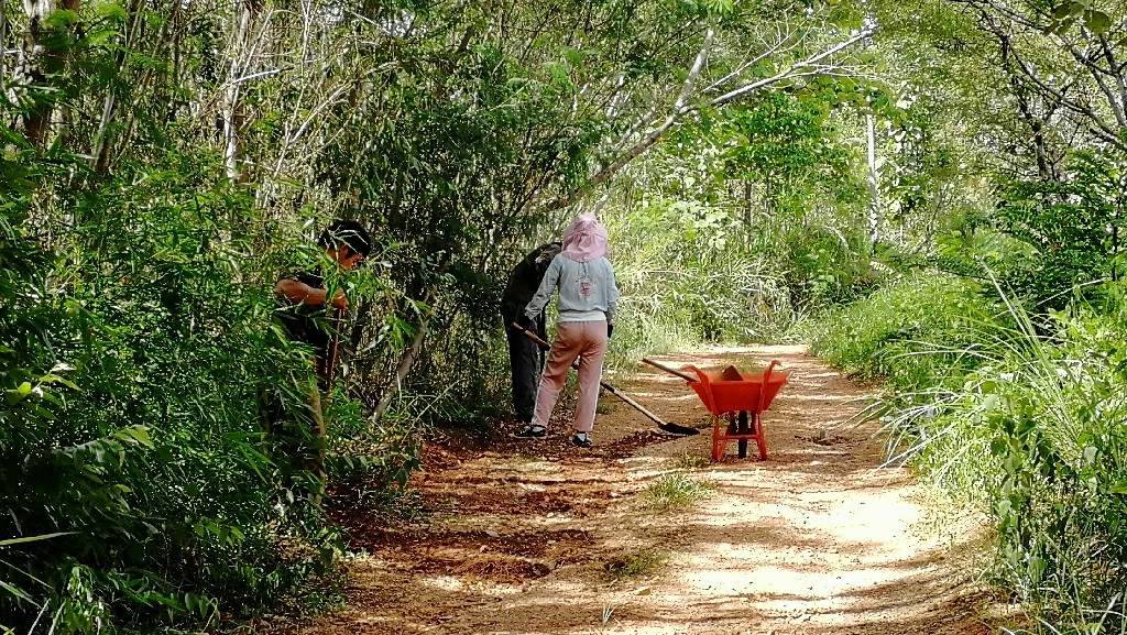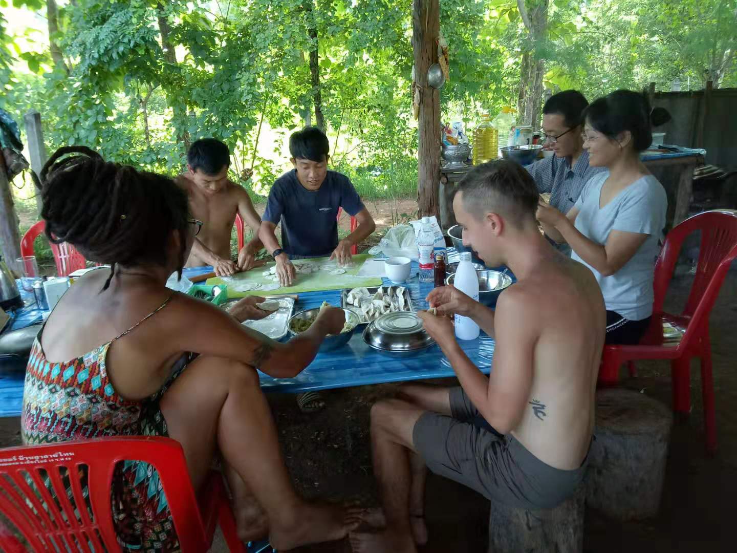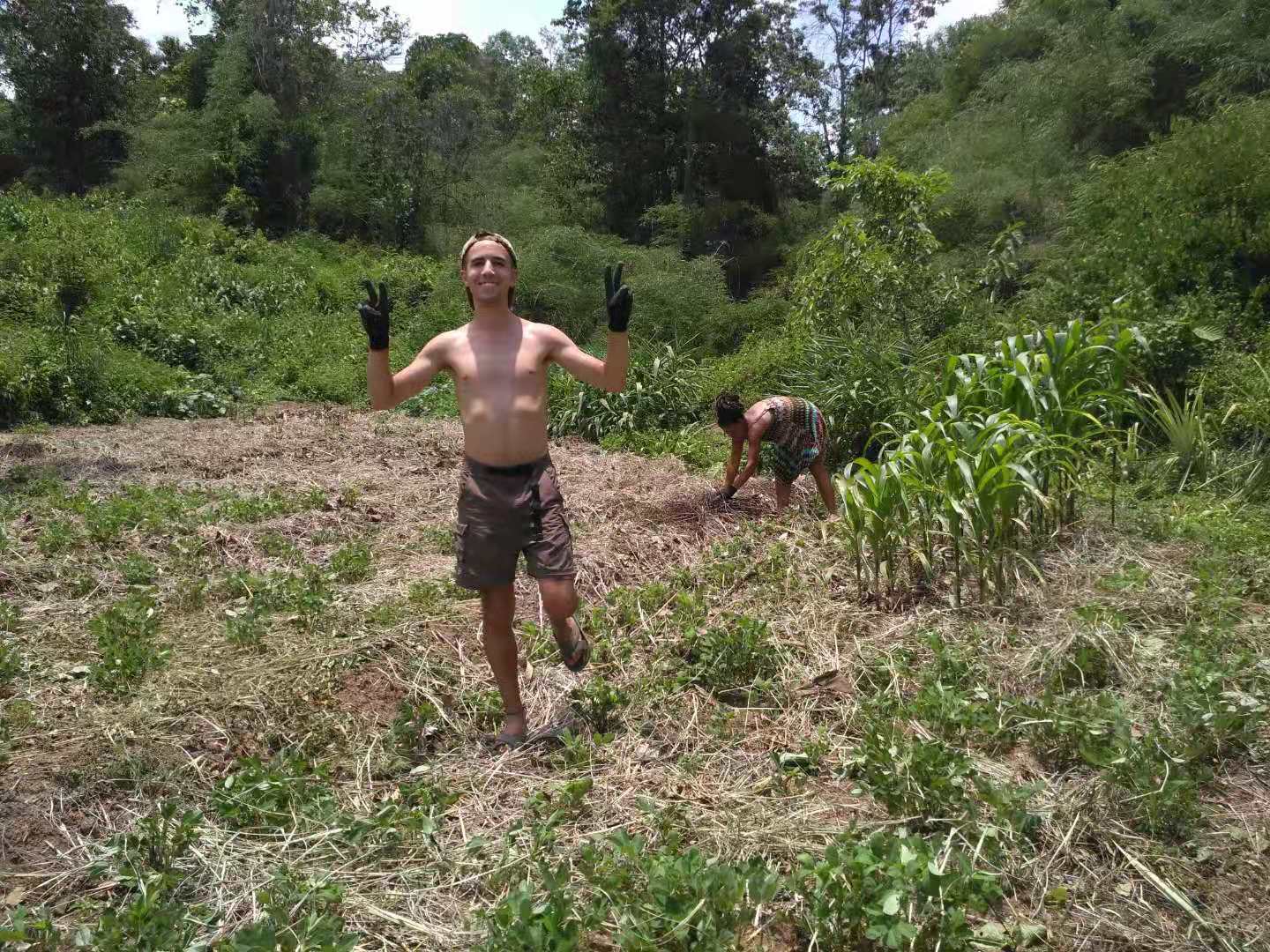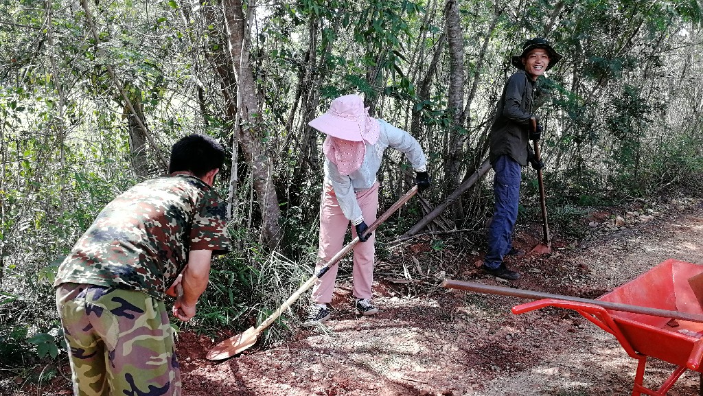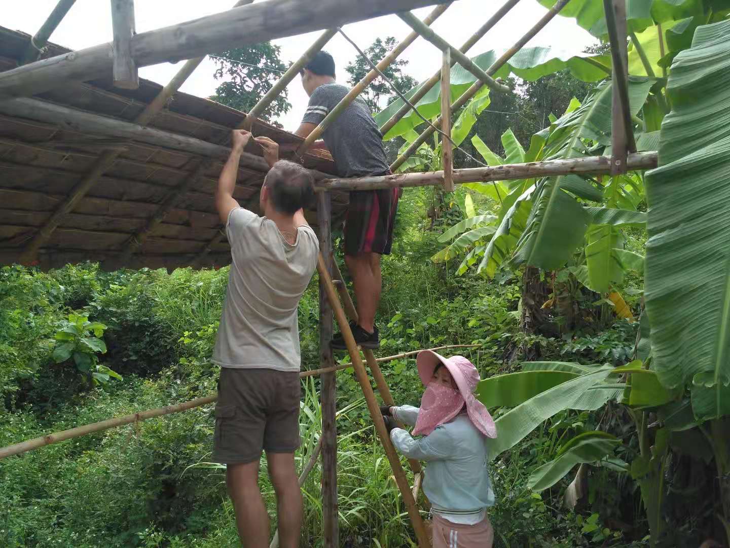 照明、舒婕兩位建築師又全力投入到了下一間竹屋的建設之中,乾龍、智師、阡陌也開始修整從公路到達家園的土路,此間來訪的志願者,除了隨我們回來的印度女孩Nebida,次日一個美國小哥David也從Mindful Farm自駕來訪,明天一位澳大利亞小夥也將從Mindful Farm過來體驗。