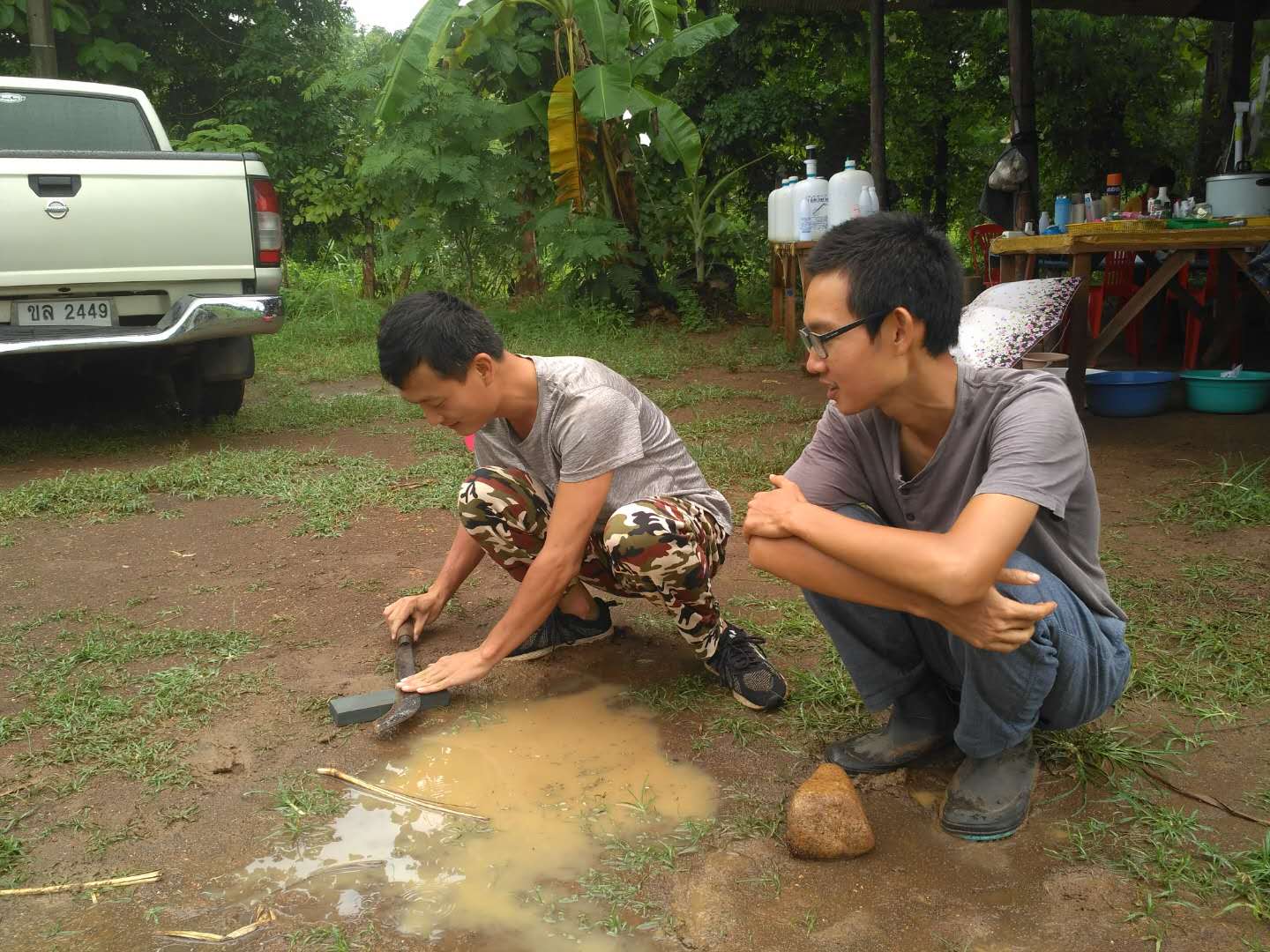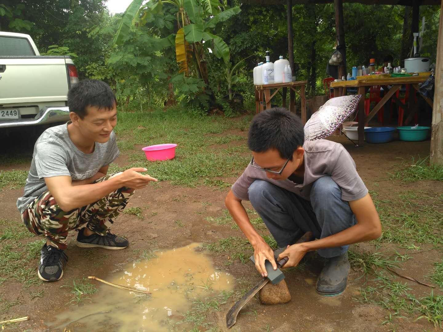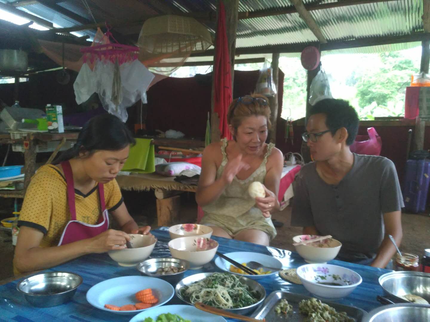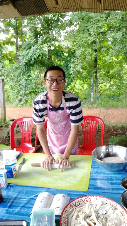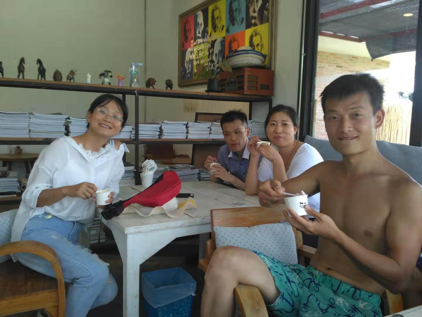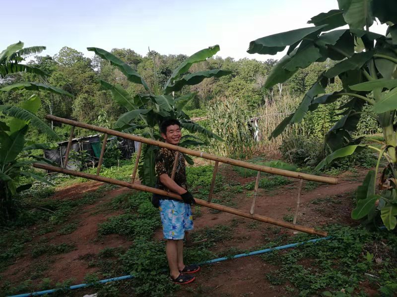 目前國際大家庭泰國分院共有兄弟姐妹九人,三位仙女和六位仙子,其中智師和阡陌剛來泰國時,正趕上泰國分院接待第一位來此交流體驗的志願者,一個叫Bank的泰國小哥。 Bank在這裡住了兩個晚上,走的時候,泰國分院有了第一筆收入——400泰銖。 此後幾天,Bank又相繼因落下了充電器和衣服,兩度再訪綠洲。