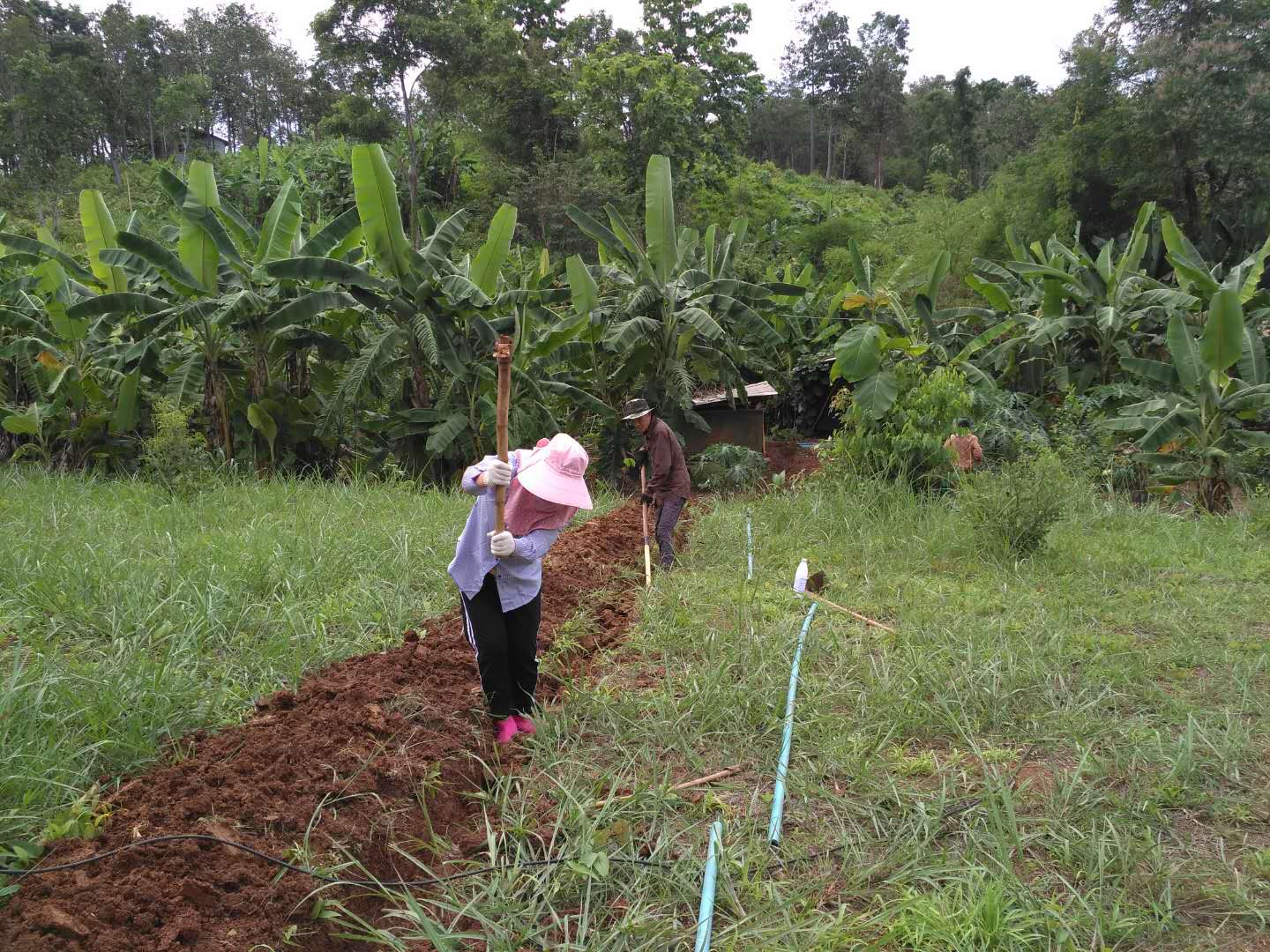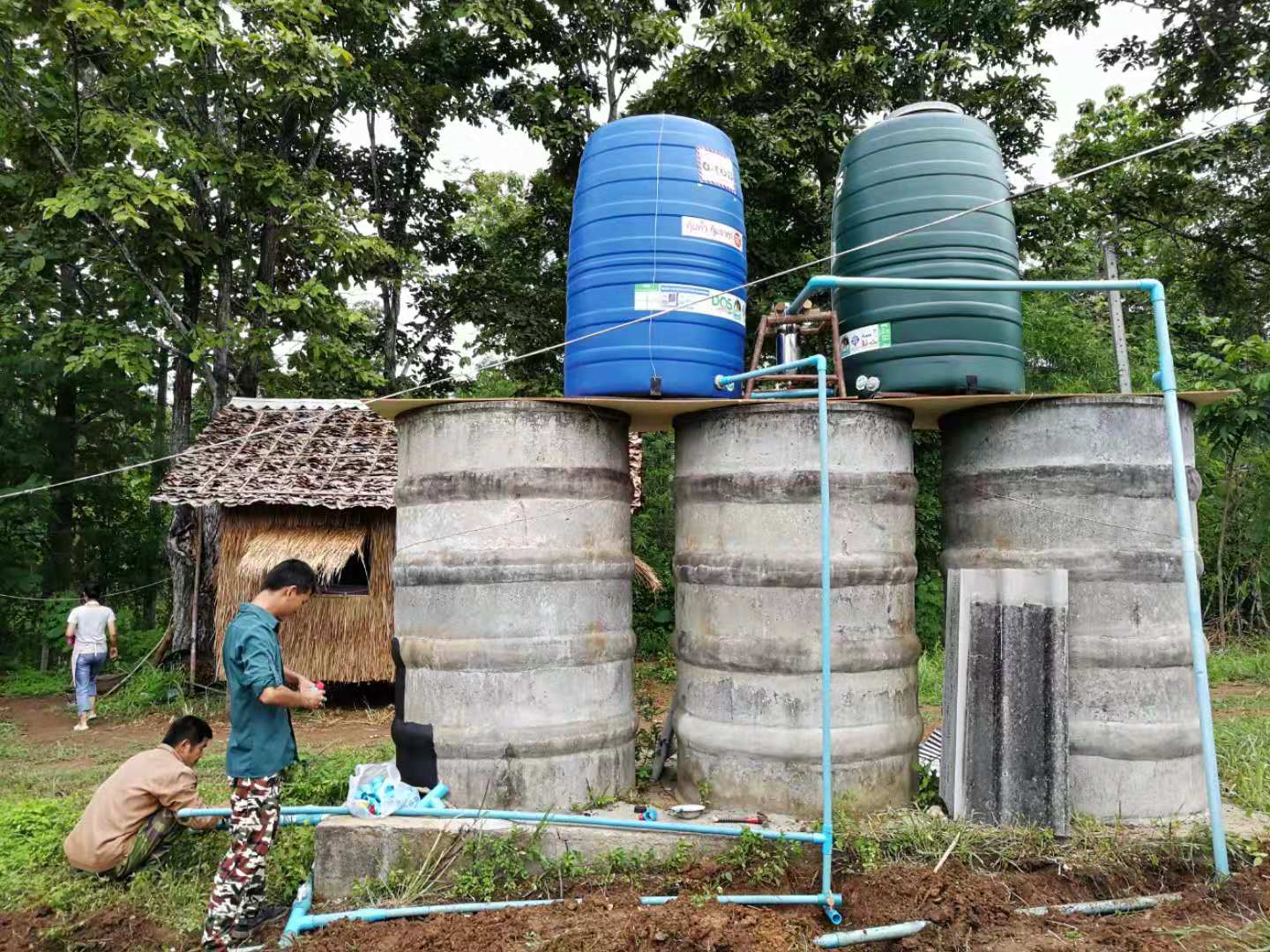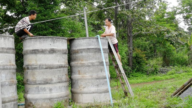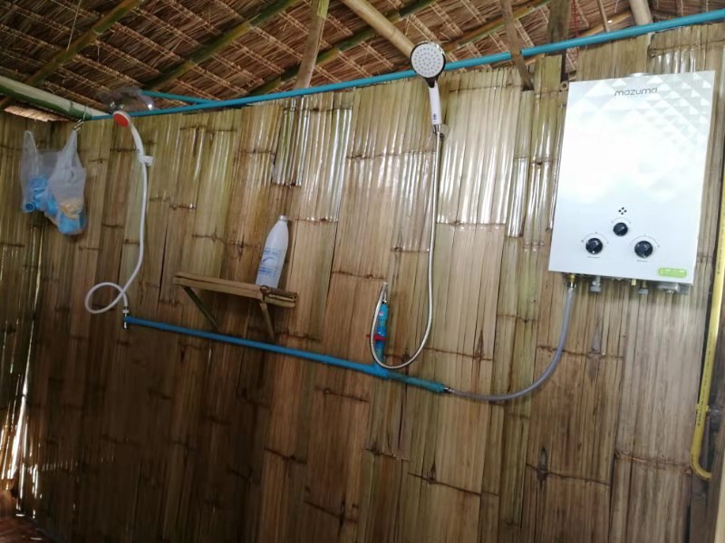 之前這邊,除飲用水和部分廚房用水外,其他用水都是從池塘裡直接抽取,隨著乾龍的到來,便開啟了另覓水源的探索和水質淨化的工程,雖然水源探索未果擱置,但洗衣、洗澡、廚房用水的凈化已有成效,並且在此期間,我們的新洗澡間和歌舞廳近乎同步竣工,洗澡間目前正處在試用調整階段,歌舞廳待EM菌一到位,便可開張營業。