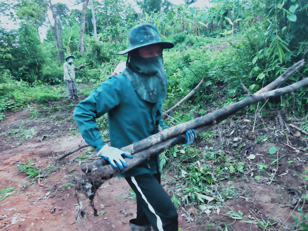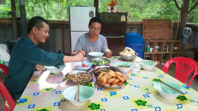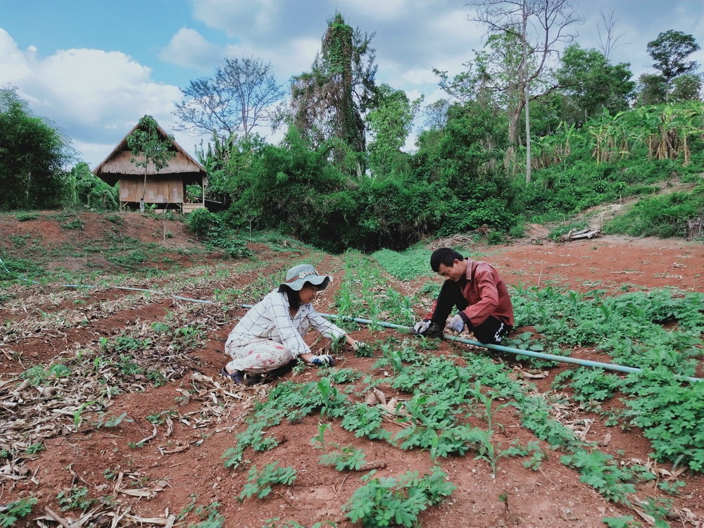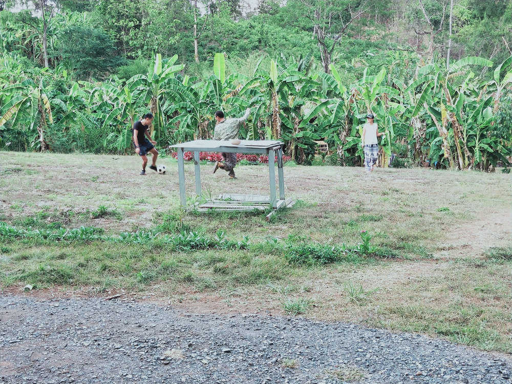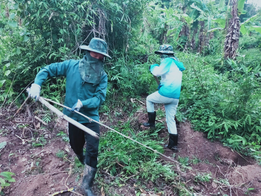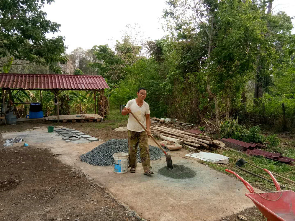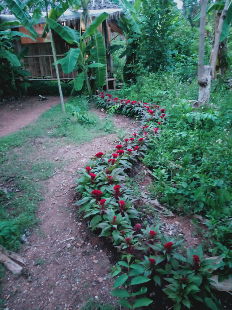 近一個多月的時間,我們5個人每天早上在山上參與集體勞動,展開了大面積的雜草清理模式,雨季真是各種植物沸騰活躍的時期哟,瞧瞧它們的生長速度就知道,這些小傢伙們被滋潤的太厲害,生機勃勃的開啟了瘋長進程,處處綠意盎然的同時,也給我們增加了困擾,這座山說起來不算大也不小,對於5個人來說工作量還是挺大的,山上各種小灌木居多, 拔根清除顯得比較難,運用割草機還是較快的一種選擇,但小草們再次生長的速度也是驚人的,不過經過了一個月與雜草做鬥爭,已經有一些很顯著的變化,在雜草出沒的地方已經逐步替換上了牛油果樹、芒果樹和芭蕉樹,除了已有的芭蕉樹、鳳梨、木瓜是現成且移植的較多外,我們又培育了幾十株鳳梨蜜樹、幾株荔枝樹、橘子樹、桑葚樹、龍眼樹等等果樹品種。