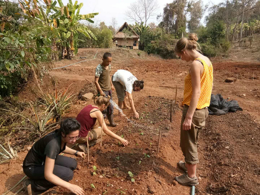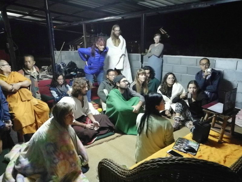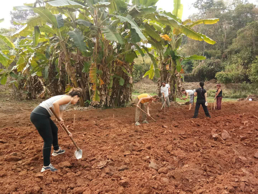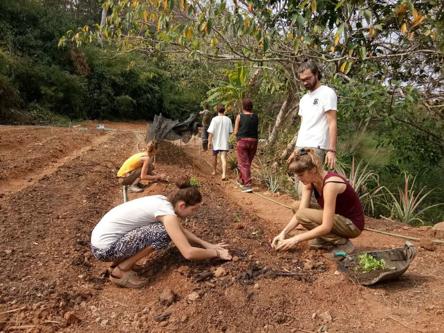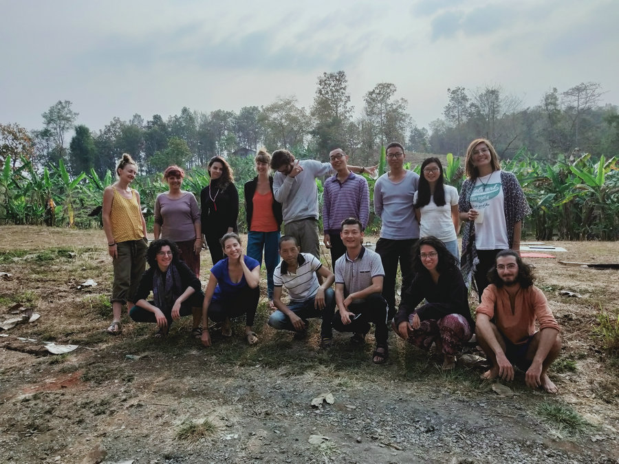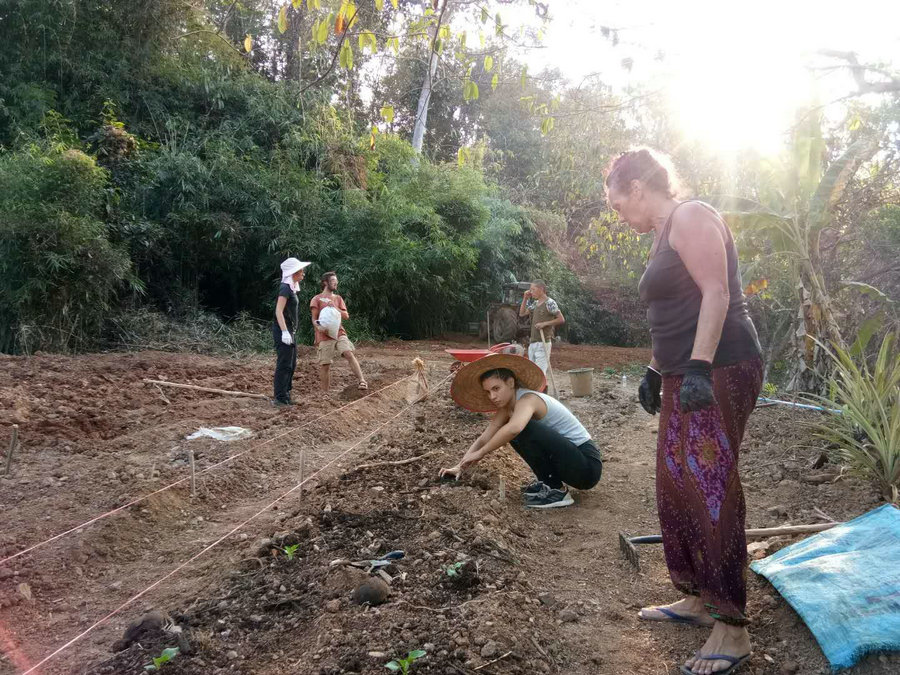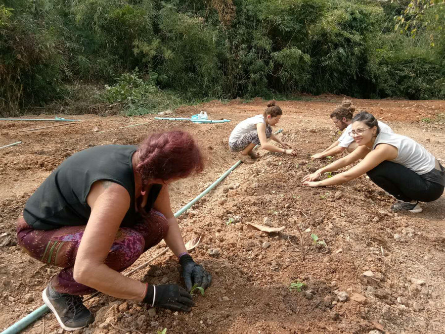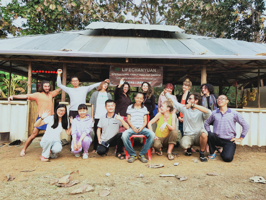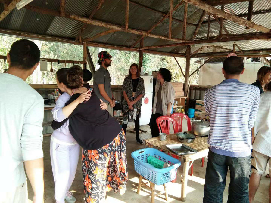 光輝歲月里的歡樂時光總是多姿多彩,2月6號,Pinan帶來了十位分別來自巴西,美國,法國,比利時,以色列,德國,瑞士,英國的志願者,泰國家園一下子熱鬧歡騰起來了,千姿一路張羅著為志願者們安排住房,協調后八位志願者都住進了屋子,還有兩位和Pinan打地鋪就睡在大廳了。 由於我們接待志願者的經驗少,PiNan為我們做了活動日程時程表,早起學學瑜伽做做操,打打詠春練會兒功,八點吃靜心早餐,期間會有志願者誦讀一段冥想心得。 飯後是勞動時間,慧光帶領建築小隊為房東新建居室,仰樂帶領種植小隊整理菜地(Pinan僱了一輛推土機又開出了一片菜地),本有兩位加入烹飪組,但後來被歡心謝絕了,據說是越幫越忙了。 但盛情難卻仍不斷有志願者來幫廚。 12點吃午飯,然後自由活動到三點,接下來工作到六點,開始晚餐,晚間活動是最豐富的,有時冥想,PiNan或者寺廟的大和尚會講講佛陀教誨分享一些啟發靈性的小故事,有時玩玩一些新奇的遊戲,跳舞唱歌,圍爐夜話,談談日間的工作體驗感想,我們也會時不時借機分享一些禪院理念,讓志願者看看我們的宣傳視頻(百川製作, 寶貝朗讀的那款好贊)瞭解綠洲的生活模式,不得不說,通過一次次和志願者們的遊戲娛樂和逐漸深入的交流,一切進行地越來越順暢了,對以後如何向西方傳播理念介紹家園思路也更加清晰了。 尤其是最後一晚的臨別會話,仰樂向大家介紹了導遊和建設三百人分院的理想,慧光向大家朗讀了《join us as an Earth Citizen》,千姿向大家吹奏陶笛並表示感謝,歡心也表達了大家一起度過的歡樂時光和感激之情,我說這裡是大家的第二家園,隨時歡迎你們來這個歡樂青春永駐的地方。 給每位志願者都贈送了一張附有新時代人類八百理念的圖畫卡片。 很多志願者也表達了會持續關注瞭解生命禪院,回國後也會向周邊的人分享我們的資訊,種子一點一滴地播撒著,相信時機成熟時定會開花結果綠草遍地,感恩感謝兄弟姐妹們的默契配合和精彩綻放讓我們對未來生命綠洲的建設發展信心更足啦!