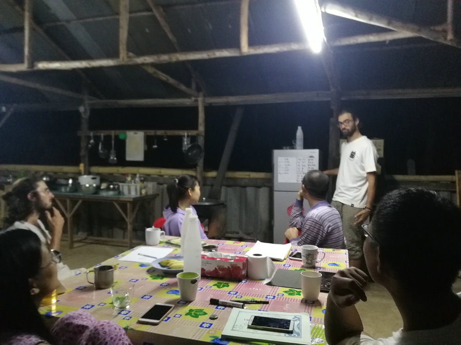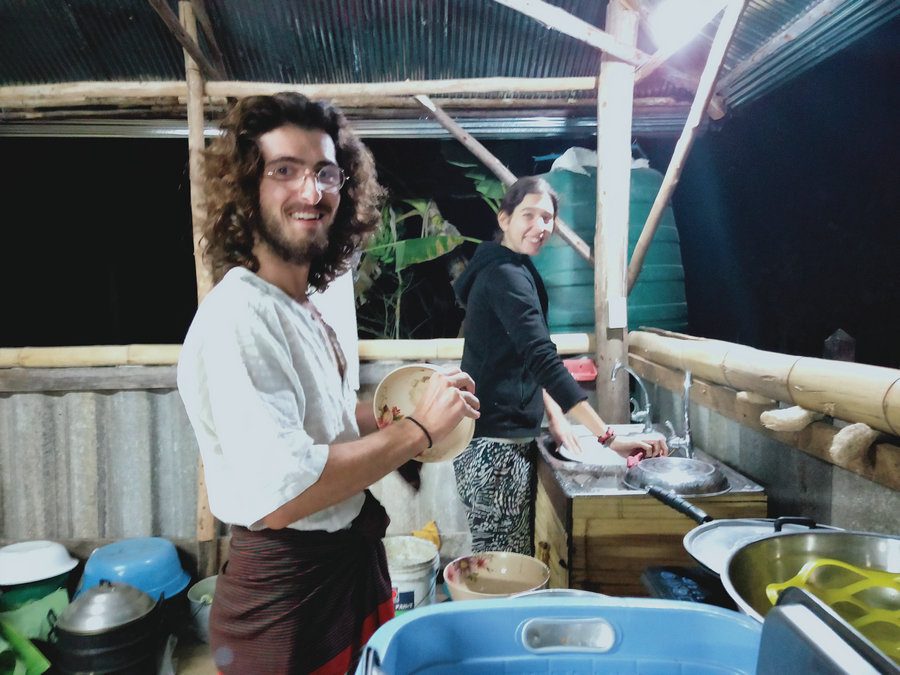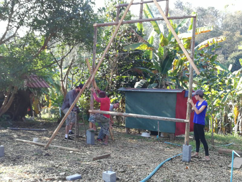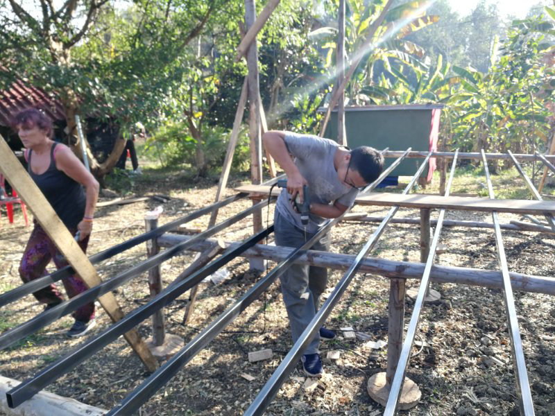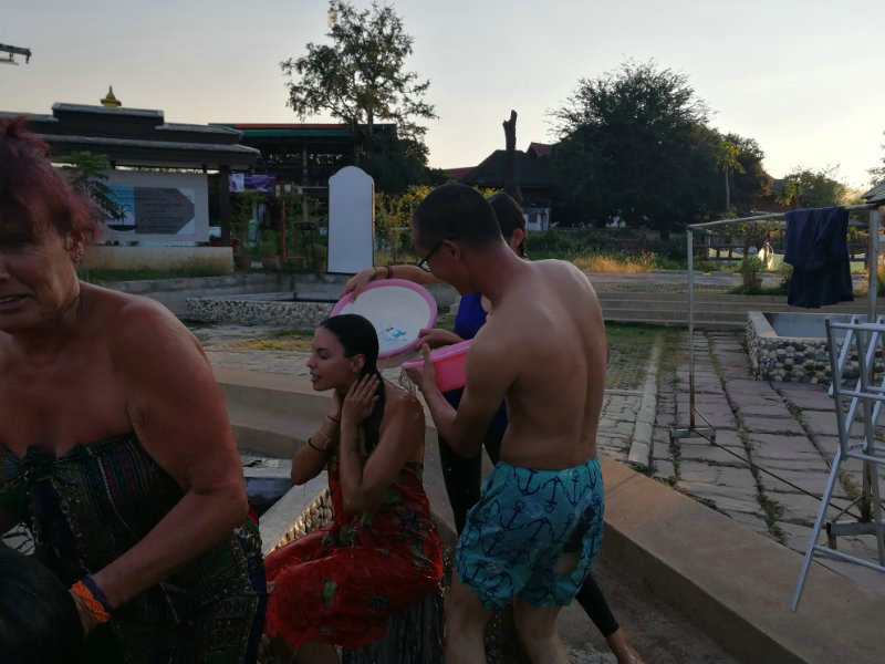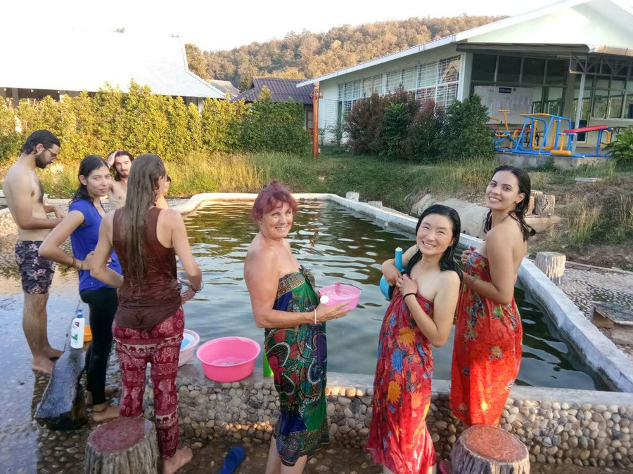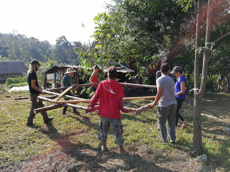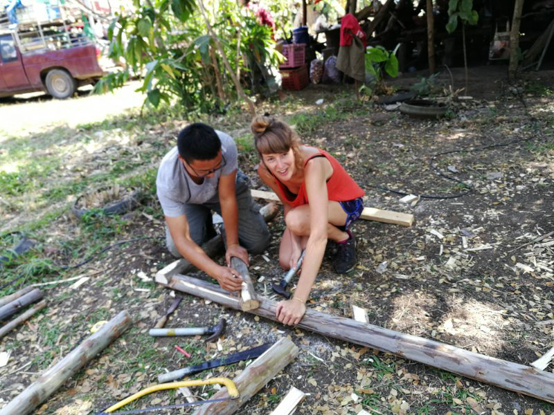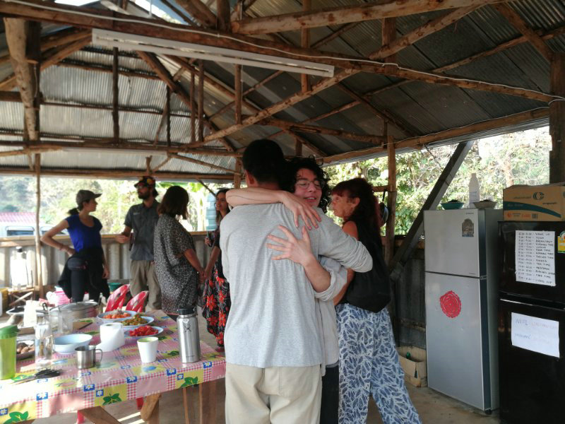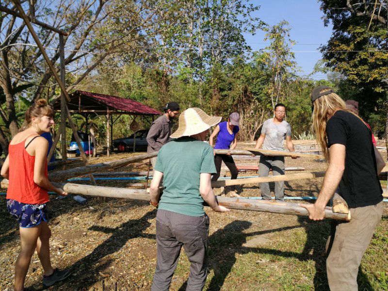 光輝歲月里的歡樂時光總是多姿多彩,2月6號,Pinan帶來了十位分別來自巴西,美國,法國,比利時,以色列,德國,瑞士,英國的志願者,泰國家園一下子熱鬧歡騰起來了,千姿一路張羅著為志願者們安排住房,協調后八位志願者都住進了屋子,還有兩位和Pinan打地鋪就睡在大廳了。 由於我們接待志願者的經驗少,PiNan為我們做了活動日程時程表,早起學學瑜伽做做操,打打詠春練會兒功,八點吃靜心早餐,期間會有志願者誦讀一段冥想心得。 飯後是勞動時間,慧光帶領建築小隊為房東新建居室,仰樂帶領種植小隊整理菜地(Pinan僱了一輛推土機又開出了一片菜地),本有兩位加入烹飪組,但後來被歡心謝絕了,據說是越幫越忙了。 但盛情難卻仍不斷有志願者來幫廚。 12點吃午飯,然後自由活動到三點,接下來工作到六點,開始晚餐,晚間活動是最豐富的,有時冥想,PiNan或者寺廟的大和尚會講講佛陀教誨分享一些啟發靈性的小故事,有時玩玩一些新奇的遊戲,跳舞唱歌,圍爐夜話,談談日間的工作體驗感想,我們也會時不時借機分享一些禪院理念,讓志願者看看我們的宣傳視頻(百川製作, 寶貝朗讀的那款好贊)瞭解綠洲的生活模式,不得不說,通過一次次和志願者們的遊戲娛樂和逐漸深入的交流,一切進行地越來越順暢了,對以後如何向西方傳播理念介紹家園思路也更加清晰了。 尤其是最後一晚的臨別會話,仰樂向大家介紹了導遊和建設三百人分院的理想,慧光向大家朗讀了《join us as an Earth Citizen》,千姿向大家吹奏陶笛並表示感謝,歡心也表達了大家一起度過的歡樂時光和感激之情,我說這裡是大家的第二家園,隨時歡迎你們來這個歡樂青春永駐的地方。 給每位志願者都贈送了一張附有新時代人類八百理念的圖畫卡片。 很多志願者也表達了會持續關注瞭解生命禪院,回國後也會向周邊的人分享我們的資訊,種子一點一滴地播撒著,相信時機成熟時定會開花結果綠草遍地,感恩感謝兄弟姐妹們的默契配合和精彩綻放讓我們對未來生命綠洲的建設發展信心更足啦!