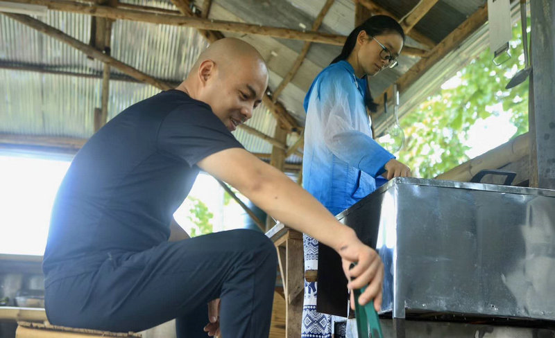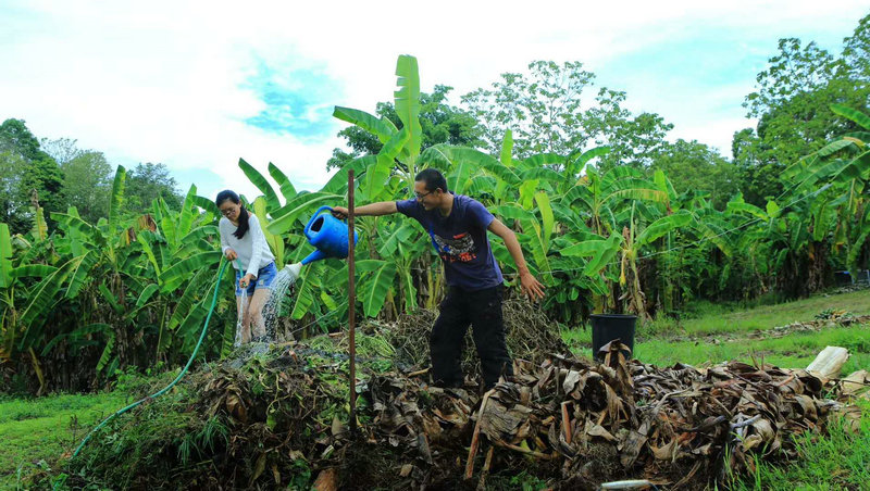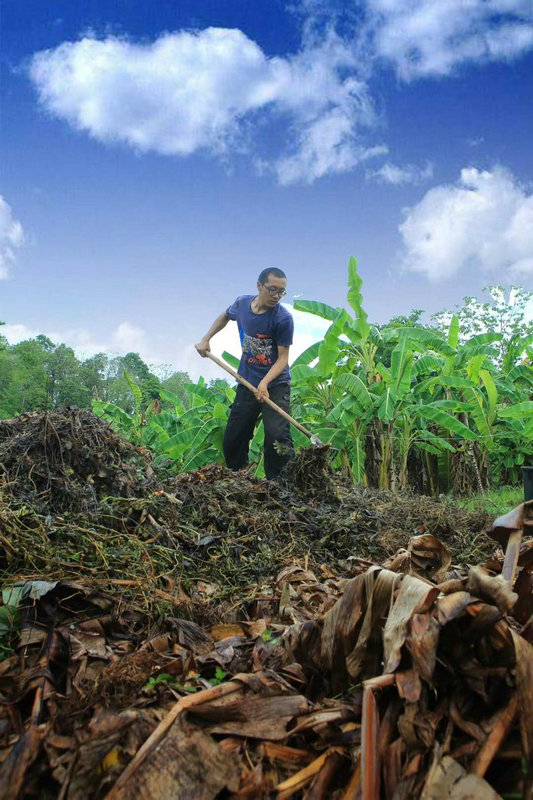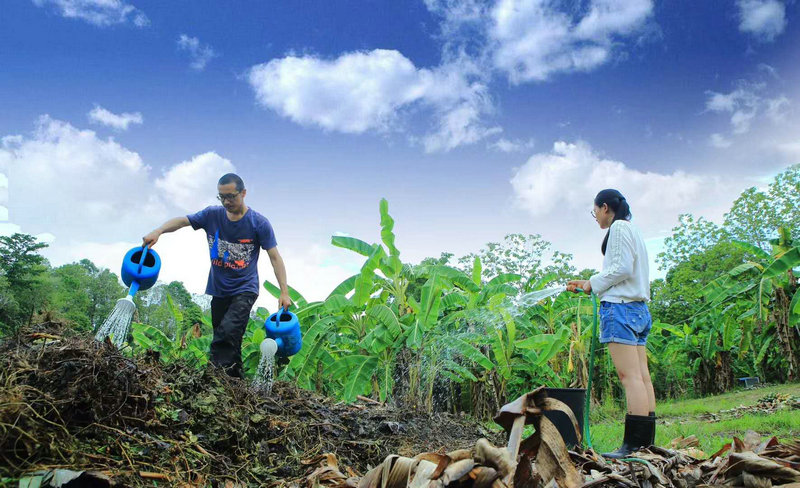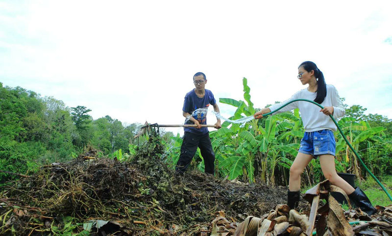再貧瘠的田地,只要用心耕耘,用汗水灌溉過,總是能長出壯碩的樹,結出肥美的果子來...... 仰樂胸和千姿姑娘在堆肥,超默契,男女搭配,幹活不累。 @清迈生命禅院 |清邁人物志 仰樂+千姿