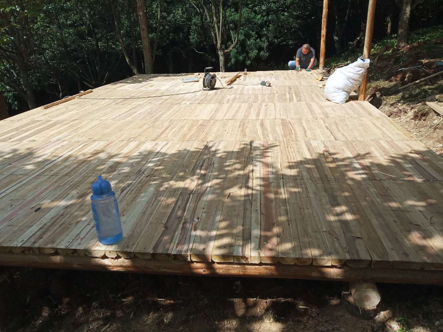 8月22號,悄悄的我又來了仙韻。 為什麼悄悄的,怕丹惠、玩玩知道嫉妒呗 請了幾天假,加上星期天,能住十五天。 我不在的這四個多月,仙韻發生了好大的變化,花兒開了好多,房子蓋齊了,豬圈雞棚的工程火熱進行中。 看看這個大舞臺,這是28號晚會的舞臺,實際是房子的地板,蓋好房子前先做一次舞臺,做到充分利用。