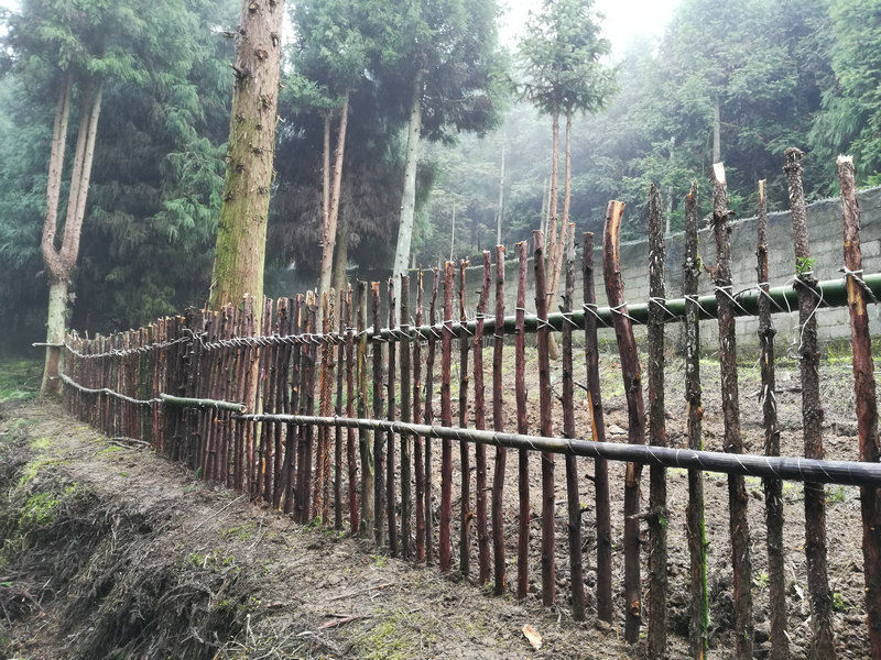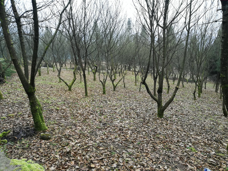 園內四周皆是挺拔茂密的柳杉,園內中部種植了樹齡有12年、9年的板栗樹至少三百棵,其它樹種有梨樹40棵,李子樹、銀杏樹各30棵,桃樹、核桃樹各15棵,獼猴桃4棵,桂花樹50棵,紅豆杉37棵,香椿樹15棵,一片竹林等。