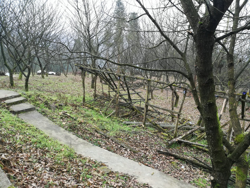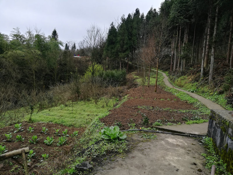 已開墾的菜地主要在桃樹、李子樹和板栗樹下。 養殖有31隻羊,大羊22隻,小羊9隻。