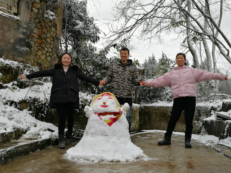 一夜睡醒,千里冰封,雪花飄飄。 望莊園內外,晶瑩剔透; 兄弟姐妹,喜笑顏開。 打雪仗,堆雪人,好不熱鬧。 須晴日,看銀裝素裹,分外妖嬈。 雪人如此多嬌,引無數仙民竟相拍照。 惜秦皇漢武,略輸文采; 唐宗宋祖,稍遜風騷。 一代天驕,成吉思汗,只識彎弓射大雕。 俱往矣,數可愛人物,還看我們。