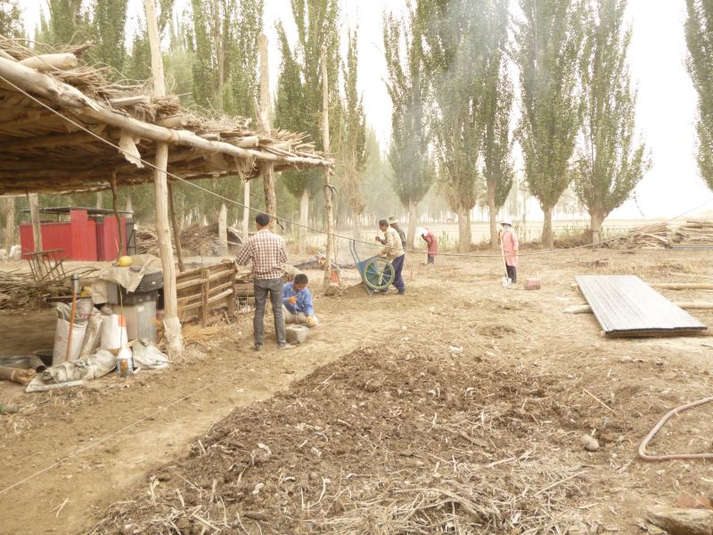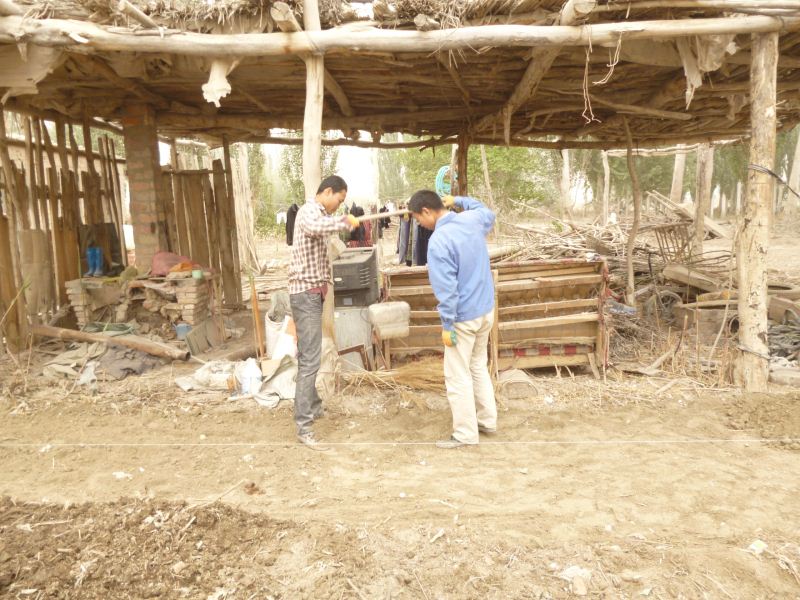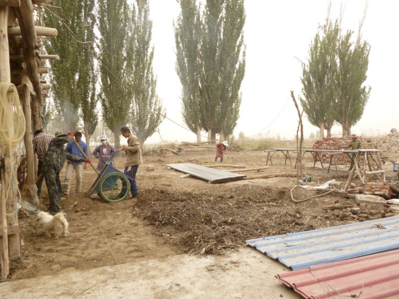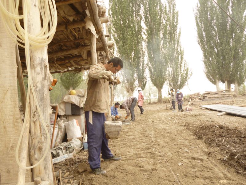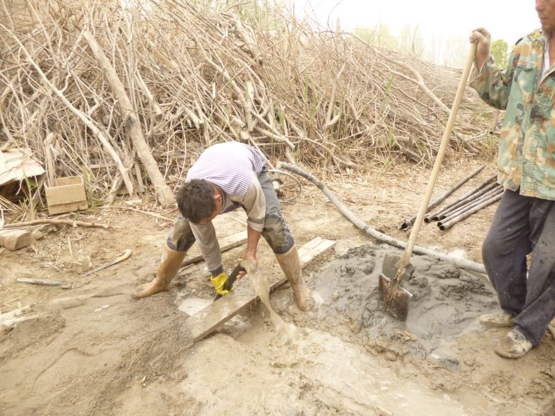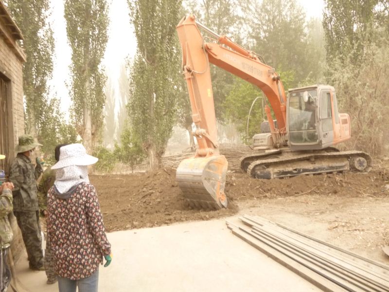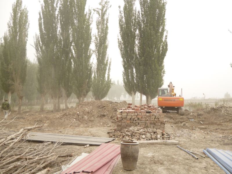 工程量浩大,拆房子,塡水沟,平田整地,格萨尔水质很差,在院子里打一眼吃水井,拉电线到果园,在果园里打井抽水,几千株枣树和苹果树发芽了,二十位兄弟姐妹挥汗如雨干上了,格萨尔正在发生着巨大变化,将来的格萨尔院落将直接与塔里木河相连。 2014-04-25