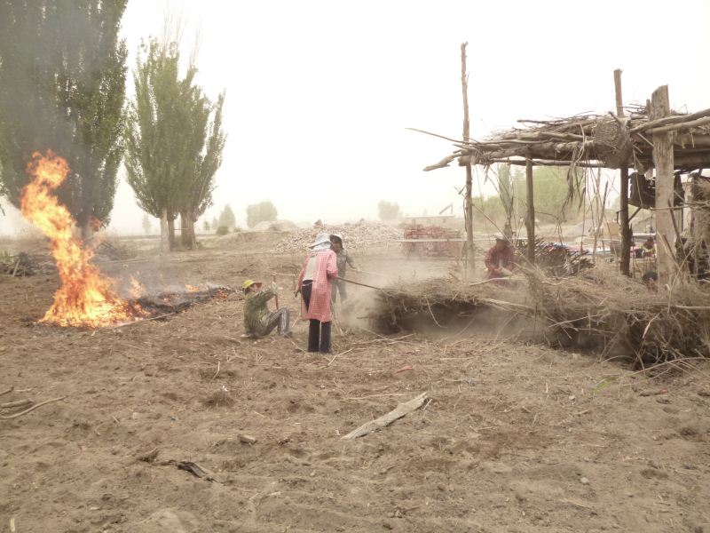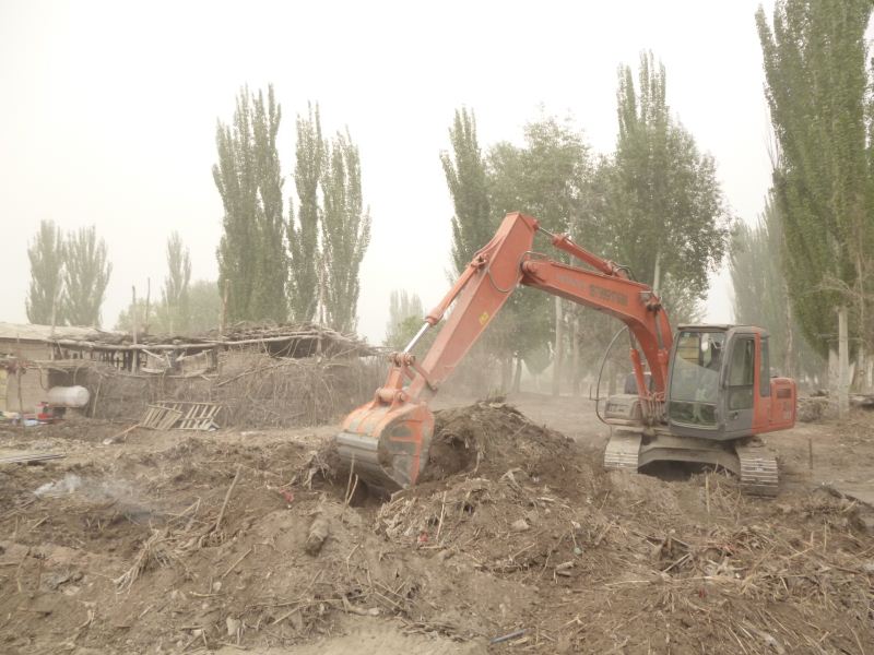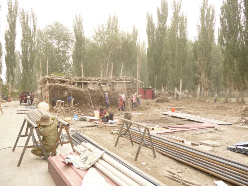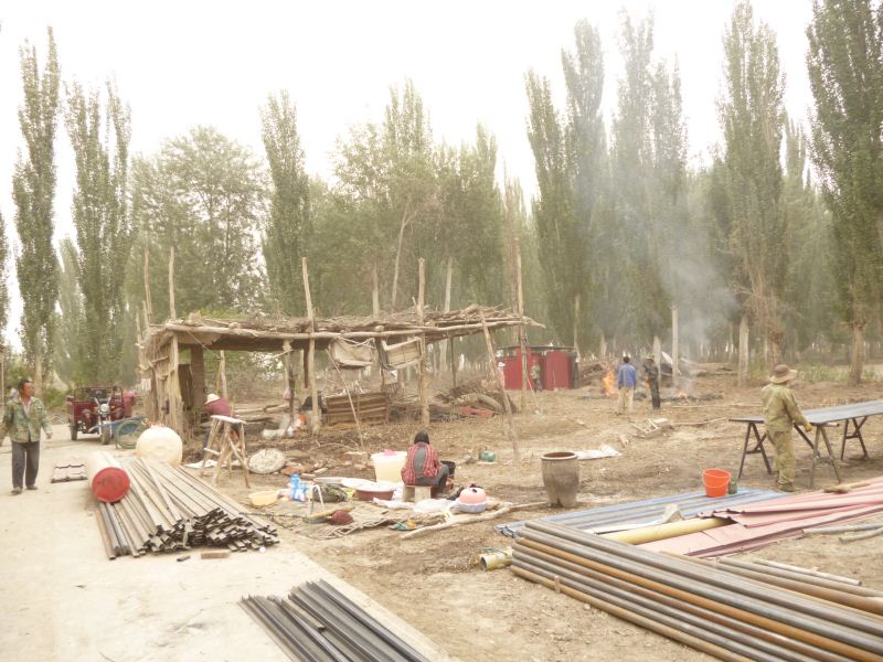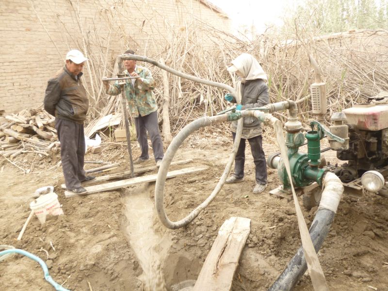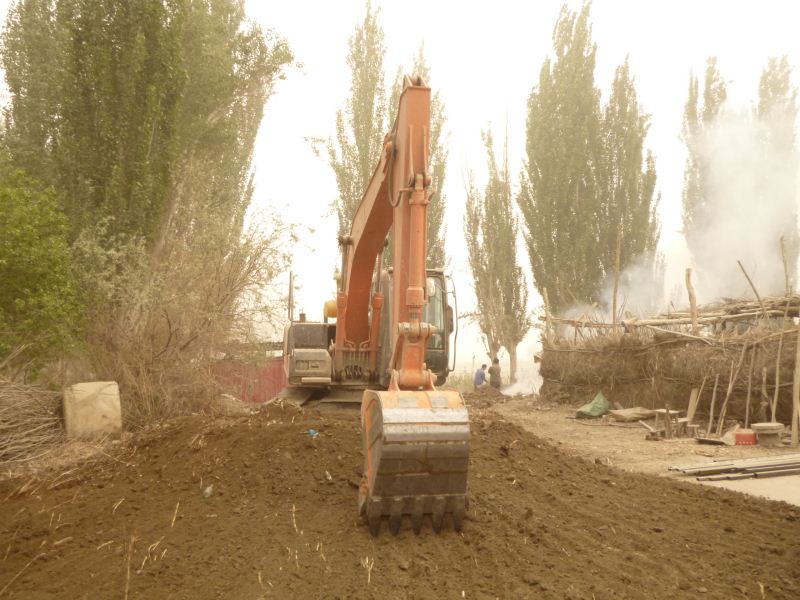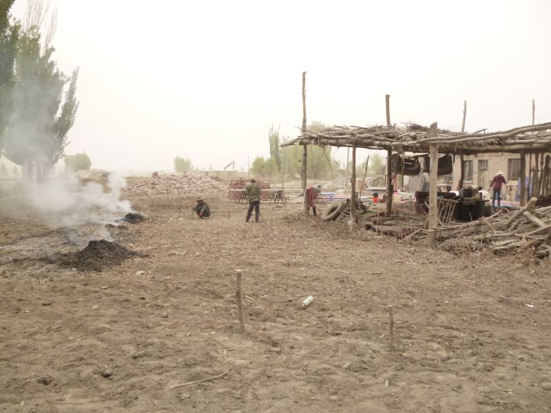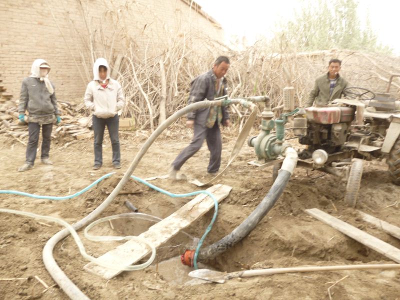 工程量浩大,拆房子,塡水沟,平田整地,格萨尔水质很差,在院子里打一眼吃水井,拉电线到果园,在果园里打井抽水,几千株枣树和苹果树发芽了,二十位兄弟姐妹挥汗如雨干上了,格萨尔正在发生着巨大变化,将来的格萨尔院落将直接与塔里木河相连。 2014-04-25