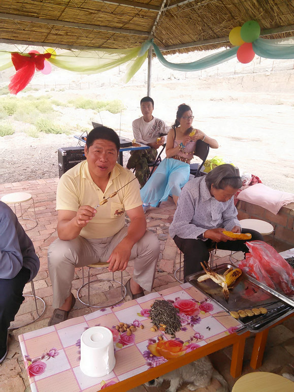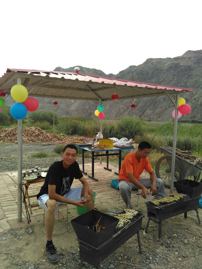 燒烤基地「工商註冊命名為孔雀河度假村; 現已初步投入營運,一處處景觀,景點,在設計大師娥皇大姐的精心構思中應用而生,燒烤基地環境優雅,涼亭,草房,小橋,風情長廊,構成了一副壯麗的戈壁綠洲,月季,格桑花,金菊花,菊花,夜來香,沙漠玫瑰,矮牽牛,雞冠花...... 也在爭相鬥艷,放佛在向世人傾訴神奇與美麗,親人們逍遙自在,隨時在歌舞,遊戲,傳說中神仙故事,原來就在這裡; 不信有圖可以作證。