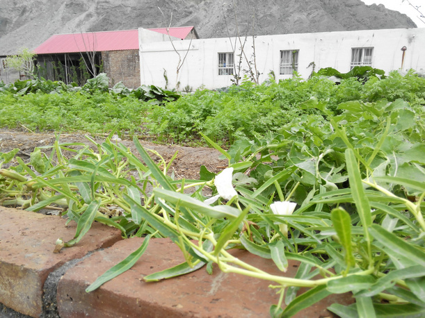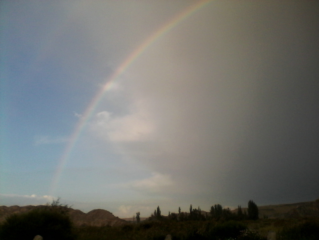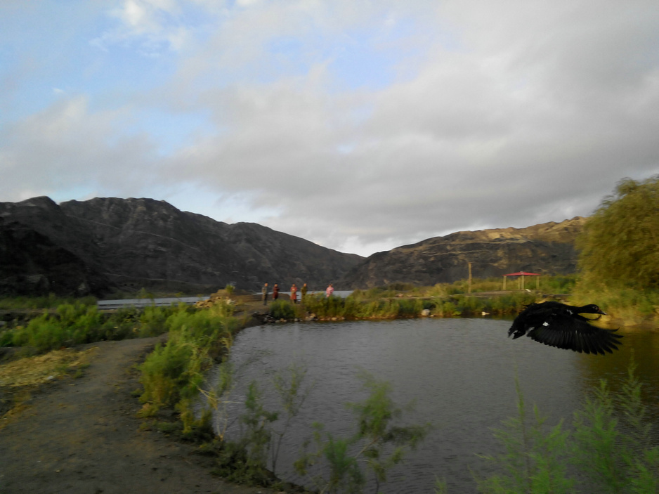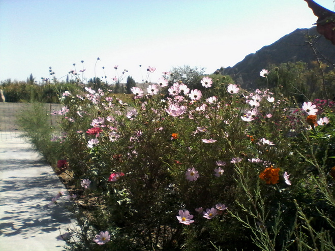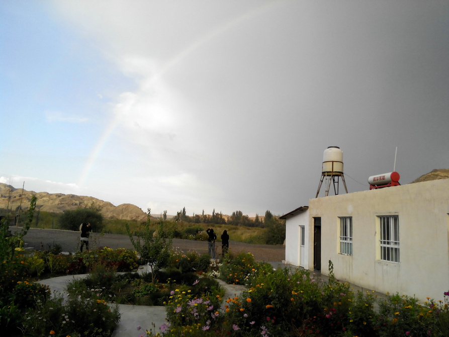 一道天塹架峭壁,一座彩橋連東西,戈壁灘綠野仙蹤,大漠里勾畫蒼穹。 美麗的沁格瑪,美麗的塞外江南。 請欣賞:彩虹掛上戈壁了,戈壁灘建水上樂園了,葫蘆門開在水面了,馬頭牆跨上牆頂了,空心菜開出喇叭花了,冬瓜和南瓜成鄰居了,西瓜和哈蜜瓜成好朋友了,鴨子都起飛了,有的還會衝浪了,小母雞開始下蛋了,野山雞也跑來串門了,野鴨都咯咯傻笑了,一群群麻雀天天都來開宴會了,小狗和小貓都談起戀愛了。 這個世界真是大不一樣了,太不可思議了。