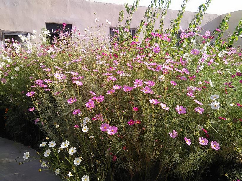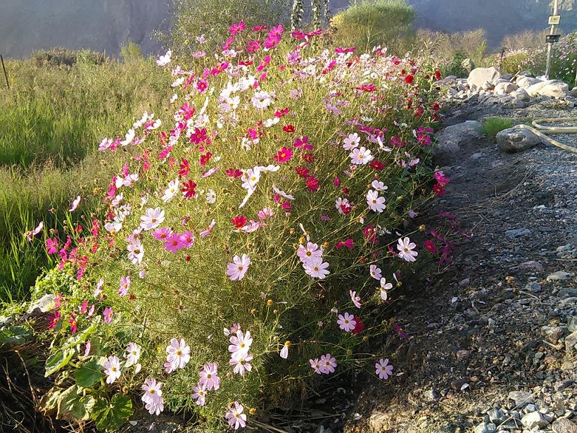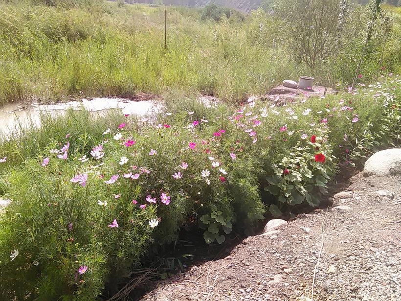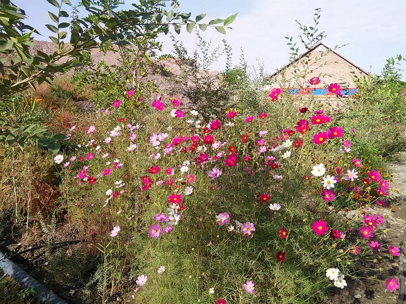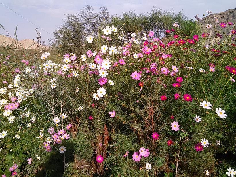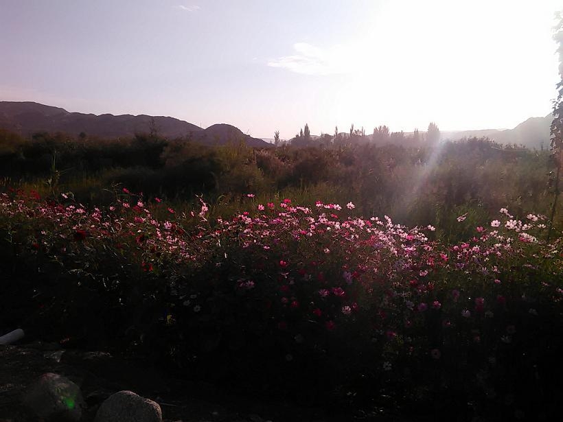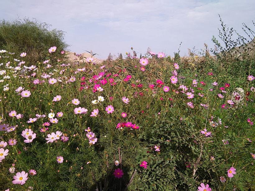 當霞光鋪滿了大地,露珠閃耀著五彩的瑰麗,格桑花已清香四溢,徇爛繽紛,綻放在沁格瑪的每一寸土地。 貧瘠的生活環境,沒有阻擋住前行的腳步,她們相擁而活,手拉手肩並肩,頑強而堅定地綻放在風沙瀰漫的戈壁,她們的生命如同閃著七彩光芒的美玉,執著而堅毅。 狂風剪不斷根莖,驟雨澆不滅希冀,烈日烤不去溫潤,環境改變不了信念,無論經過多少狂風暴雨的洗禮,她們依然亭亭玉立,把美麗和芳香還給大地。 她們不戀世俗的繁華,她們不擇條件和地利,只要給她一滴水,幾許陽光,她就成長綻放,生生不息。 這美麗而又普通平凡的格桑花啊,你讓我肅然起敬感動不已,你讓我頓悟了幸福的真諦。 沒有豪言壯語,不喜爭名奪利,你默默無聞的奉獻著自己最美的年華,你嬌柔的身體宛如彩帶鑲嵌在這方土地上,綻放是你的 天性,奉獻是你的品質,雲水禪心,瀟灑飄逸。 你多姿多情,嬌豔欲滴,你如從天而降的仙子,時而活潑時而沉寂,你洋洋灑灑把美麗和芬芳融進歲月的記憶。 看! 路邊,房前房后,小溪邊,沙石裡,樹底下,你到處在招手,到處在歡唱,到處搖曳著美麗的腰肢,舞動著七色的彩帶,紅色的如美豔的新娘,白色的如純潔嫵媚的少女,黃色的如優雅高貴的少婦,紫色的如風情萬種的仙女。 你可人的風采讓我著迷。 啊! 質樸純潔的格桑花,我愛你! 我願如你,讓生命充分綻放在這如詩如畫的花季! 我願如你把美和愛不斷地延續...... 延續......