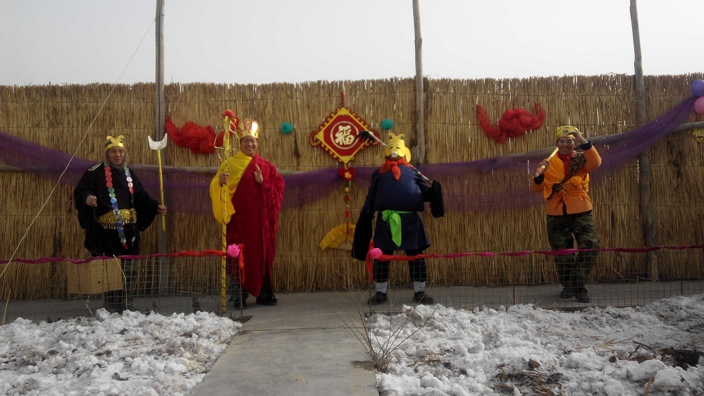 春風送暖,大地回春。 孔雀河畔艷陽高照,冰雪正在融化,萬物有待復甦。 瀟灑的陽光,迎來了白鷺,天鵝和野鴨,此時; 沁格人民正在歡天喜地鬧元宵; 人數雖然不多,但場面五彩繽紛,唐僧,悟空,八戒,沙僧,嫦娥,濟公,卓別林等等,真是精彩紛呈,目不暇接啊! 下面請欣賞: