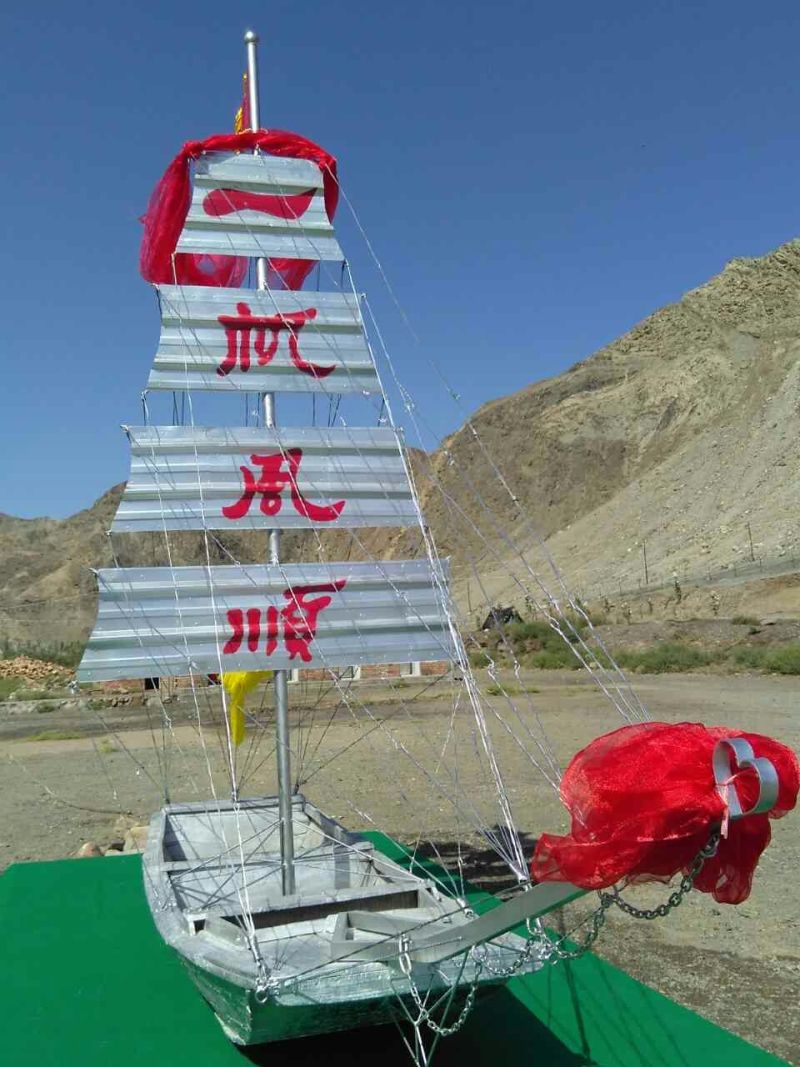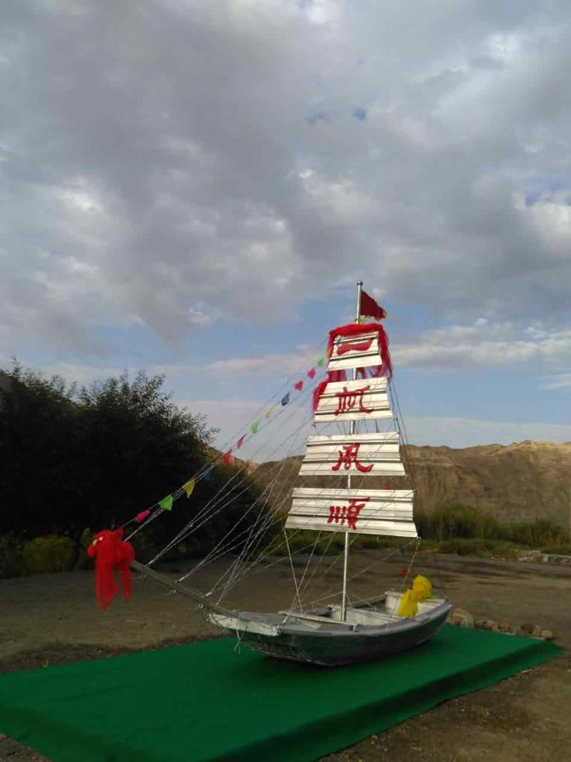 感謝娥皇的構思和設計,感謝沁格瑪兄弟姐妹們的創造性創作,利用一條廢棄的破木船,再利用一些廢舊材料,製作出了一艘可以揚帆遠航乘風破浪的帆船,構思精巧,製作精湛,願我們乘此帆船駛向仙島群島洲,一定“一帆風順。 ”